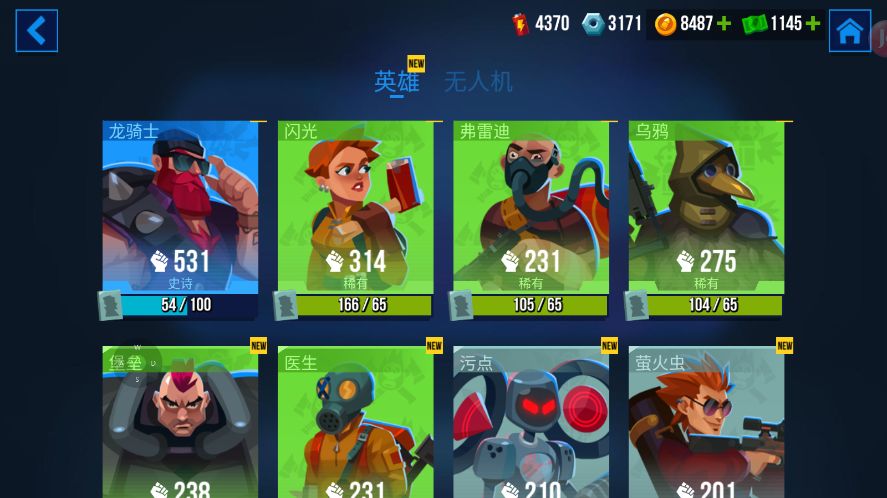 新手建议及贴士: 1,英雄没有强弱之说,只是装备、级别和技能没上去。坦克缺视野移速,狙击手提供视野及需要前排,打团都是要相互配合。 2,有朋友说堡垒好用,只是比较肉生存率高些,到后期比较笨重且手短,升到71级打最高60级的电脑够上分了 3,AI会自动搜索,没在开战的话会根据枪响围过来,如果你是首开枪的话,速战速决找地方调整一下。 4,别嫌弃老是打人机,多加点好友,上60级后很容易匹配到真人队,多练