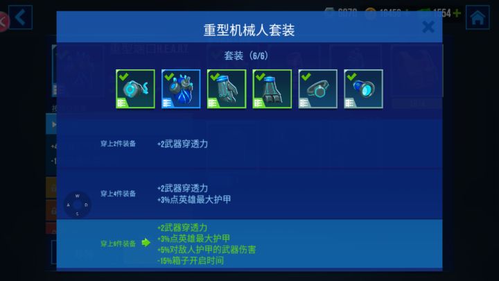 英雄的装备与选择,并不是装备稀有度和等级越高就越好的。我们点开英雄装备界面,可以看到装备也会有不同的套装选择,当装备套装分别达到2/4/6件的时候,都会额外提供更多的属性加成。当然你也可以选择2+2+2的思路,着重提高某种属性发挥最大的作用。 螺母是英雄装备升级需要消耗的道具,可以提升装备的属性加成,在升级的时候需要同时消耗装备部件与螺母,且装备等级不能高于英雄等级。螺母可以从活动奖励,宝箱等方
