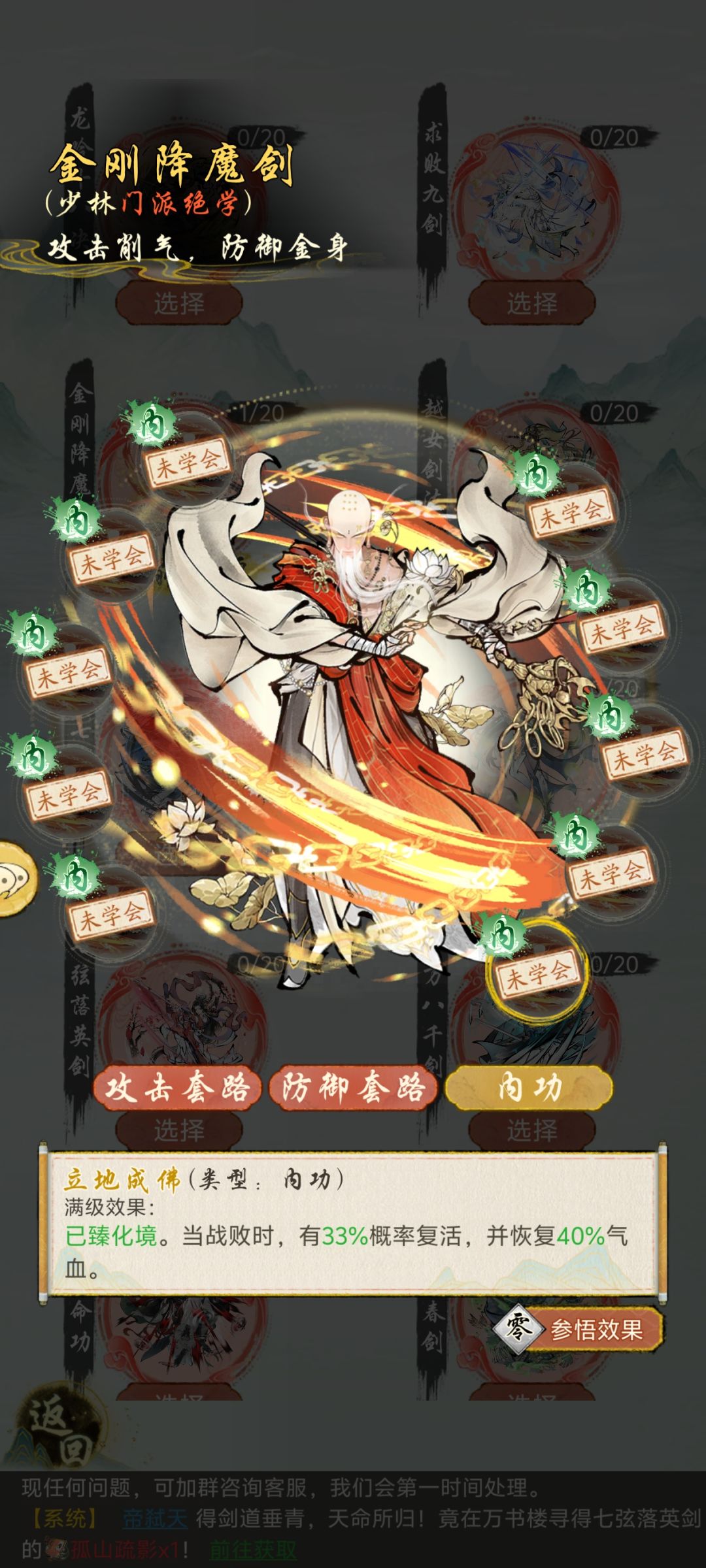 我首推金刚降魔剑,因为金刚降魔剑有两个特别好用并且通用的内功,如图一图二,并且外功也不错 其次就是越女剑法了,最强输出功法,从一测强到现在,伟大无需多言😋 #华夏千秋 #游戏攻略