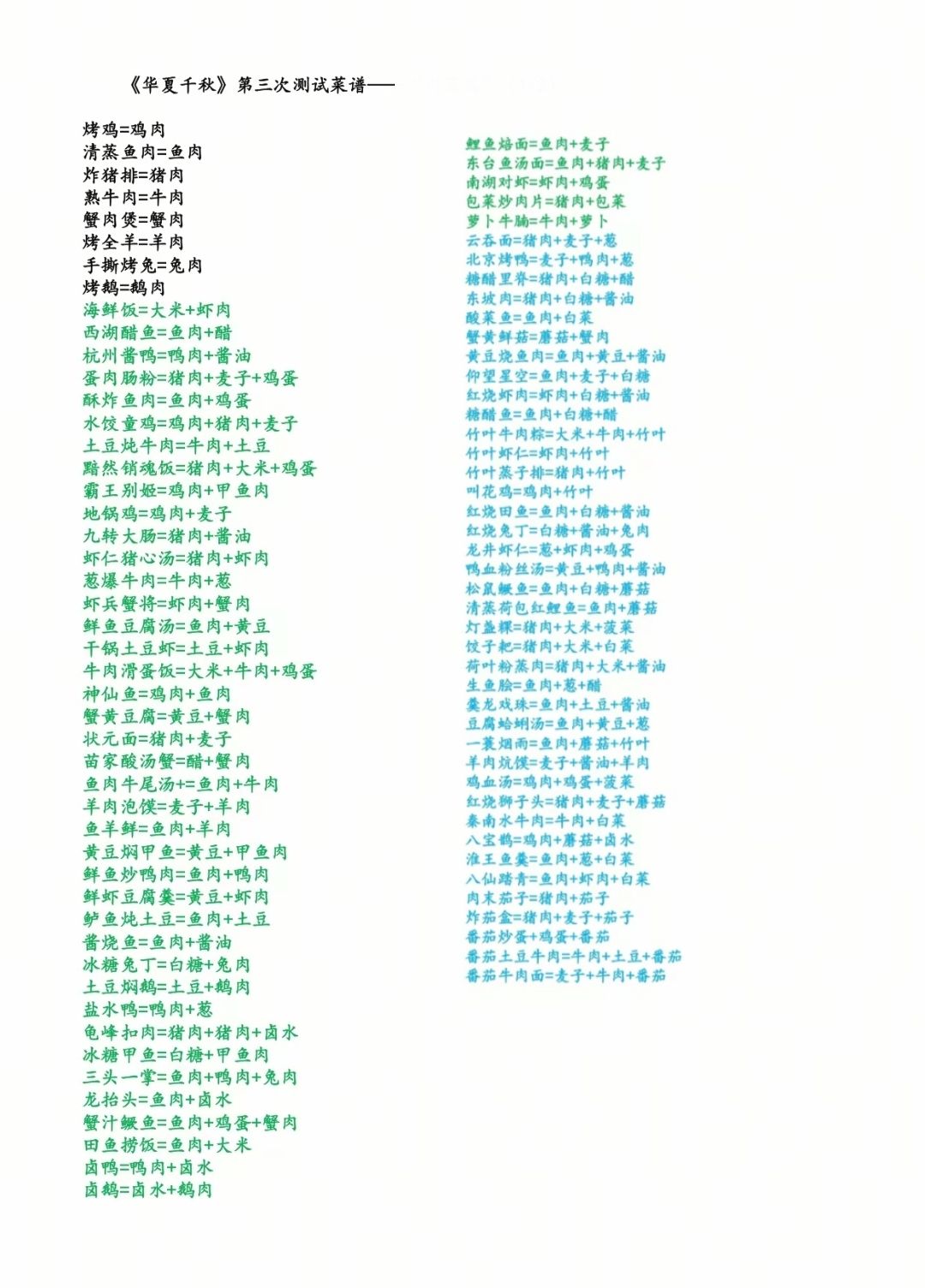 《华夏千秋》第三次测试菜谱“酒篇”