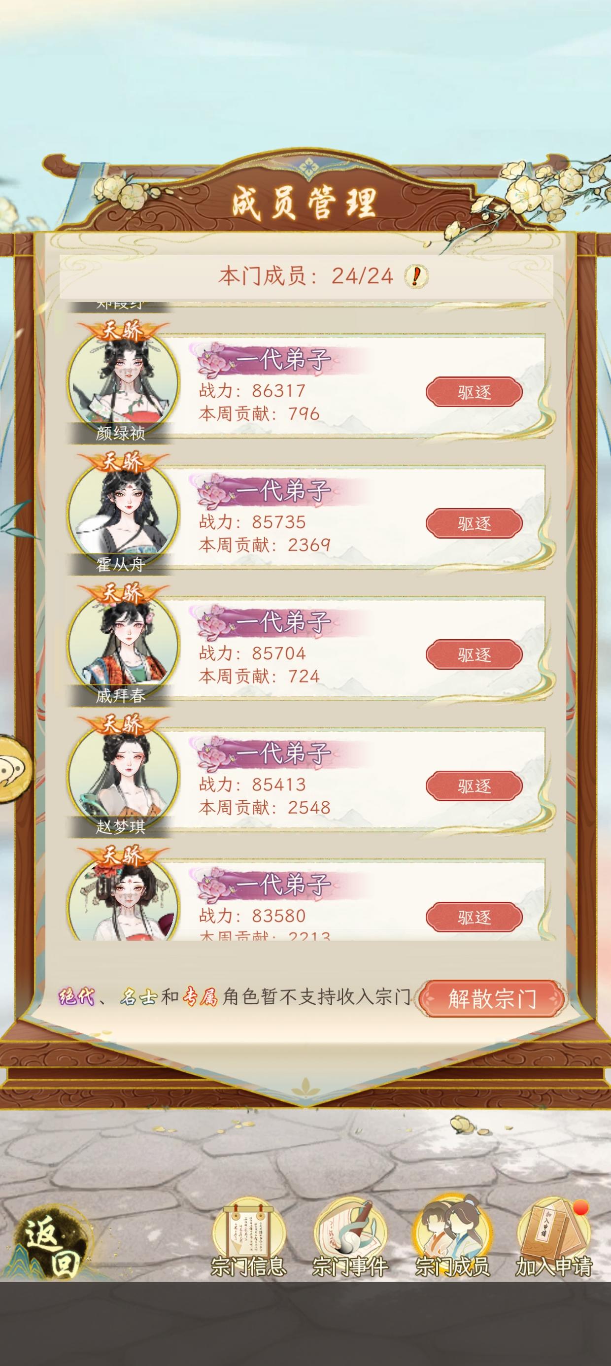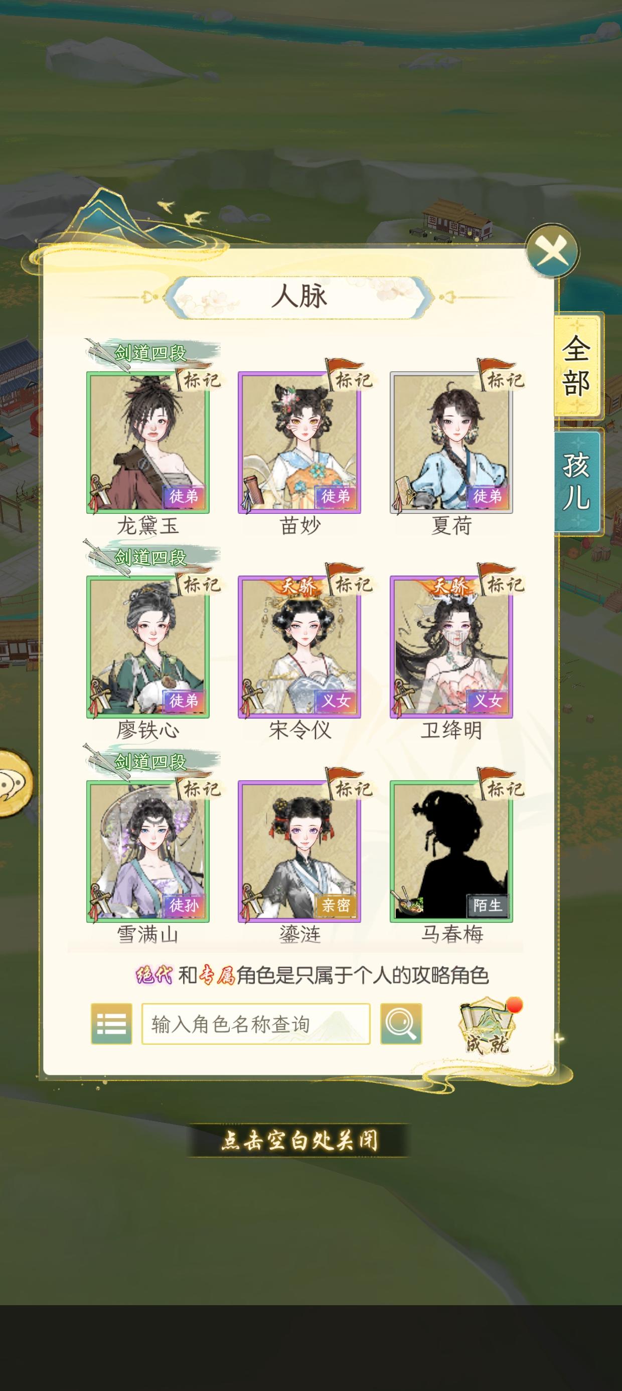随着同一服玩家集体退坑,现在还剩5人。这几天收集不详女友,除了宋、卫和玩家结婚只好收义女,龙、廖实在不好看,还有一群老太太外,已收233个,还有4个等退游的锁心消失,可惜能收徒的不详天骄女友太少,不能达成宗门全天骄不详女友。新玩家可以根据我提供的去抢喜欢的NPC吧