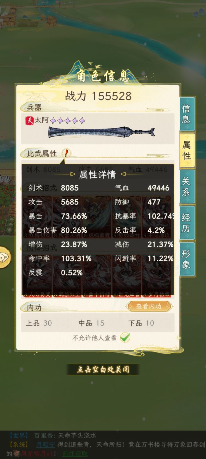 rt,中原摇钱树的伤害是有上限的,上限是1亿,打满之后是60w铜币,打摇钱树的视频我发了,一直越女绝就行,重点是战前准备,具体如下:1、武器选择干将;开锋绝增伤、暴击伤害、连击增伤、攻击;红宠词条攻击、暴击伤害。2、内功:回气有用的全带(注意华山夺气也要带),暴击伤害,除了破绽那个全都要,暴击拉到90%(六扇门满血加暴击一个基本就够),增伤,除了需要条件的全带(中岳决和暗芒刃要带),攻击,最后