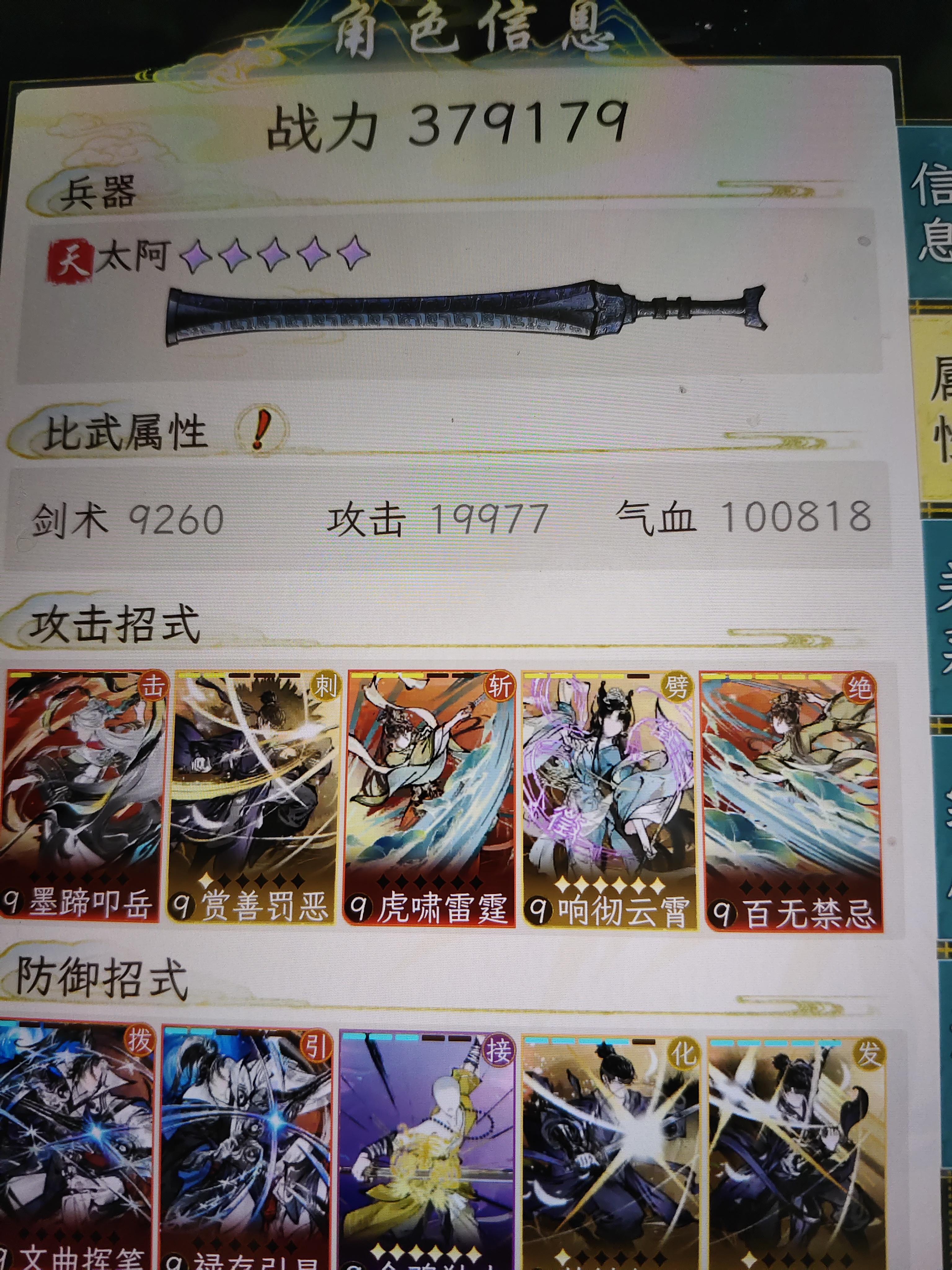 武馆前几天就已经通了,梅飞影依旧打不过…(反击致盲简直太阴了啊啊啊啊啊)弦月80关通了后期的时候星斗可摘和混元一气应该是必带的,不然吃了红内的反击反震打我一下真的遭不住,看到自己这个偏科的攻击和已经几乎随便被碰一下就蒸发的血量,想到那个日漫,因为怕痛所以就全点防御力了,嗯对,因为太莽所以就全点攻击力了(?)剑意依旧不够用,放嘲讽绝如果被打死还要给他跪着半天才能放我走,神驹踏山河的功法碰到嘲讽,