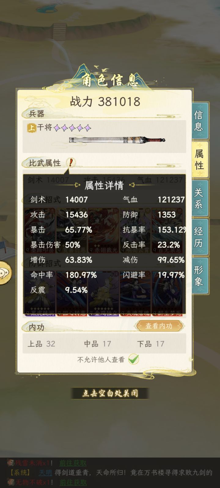 无论什么出身第一个和第三个问题都是一样的先说第二个区别武林世家 选功法攻击p2 防御p3(这两七天签到送)内功p4名门望族 选剑看p5~8前朝遗孤锻造 金铁2做菜 桃花元宵50炼药 中品补血散100.第三个选项习武 剑意250(功法经验值,主线会送)经商 铜钱5w好友 红楼2(好感度礼物)详细p9.第一个选项p10攻击气血悟性 (这个哪里看?)天命→气运上