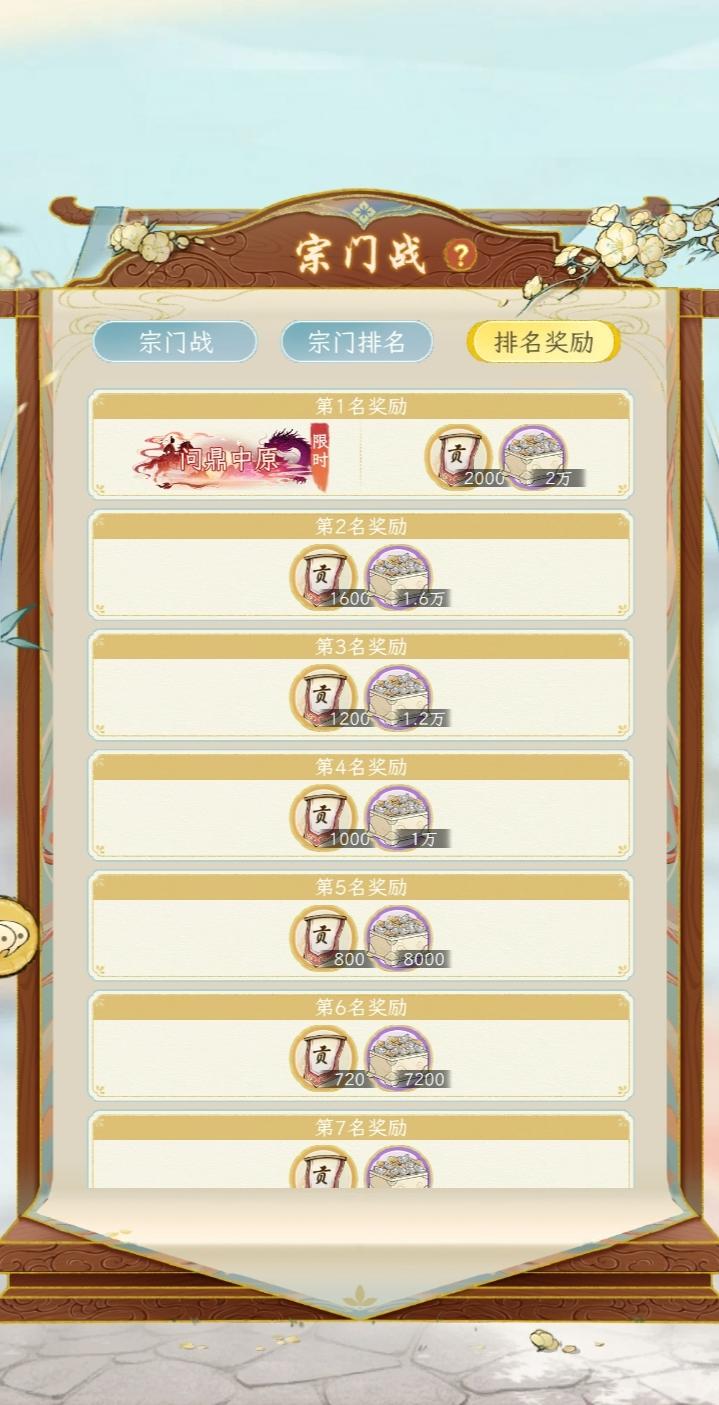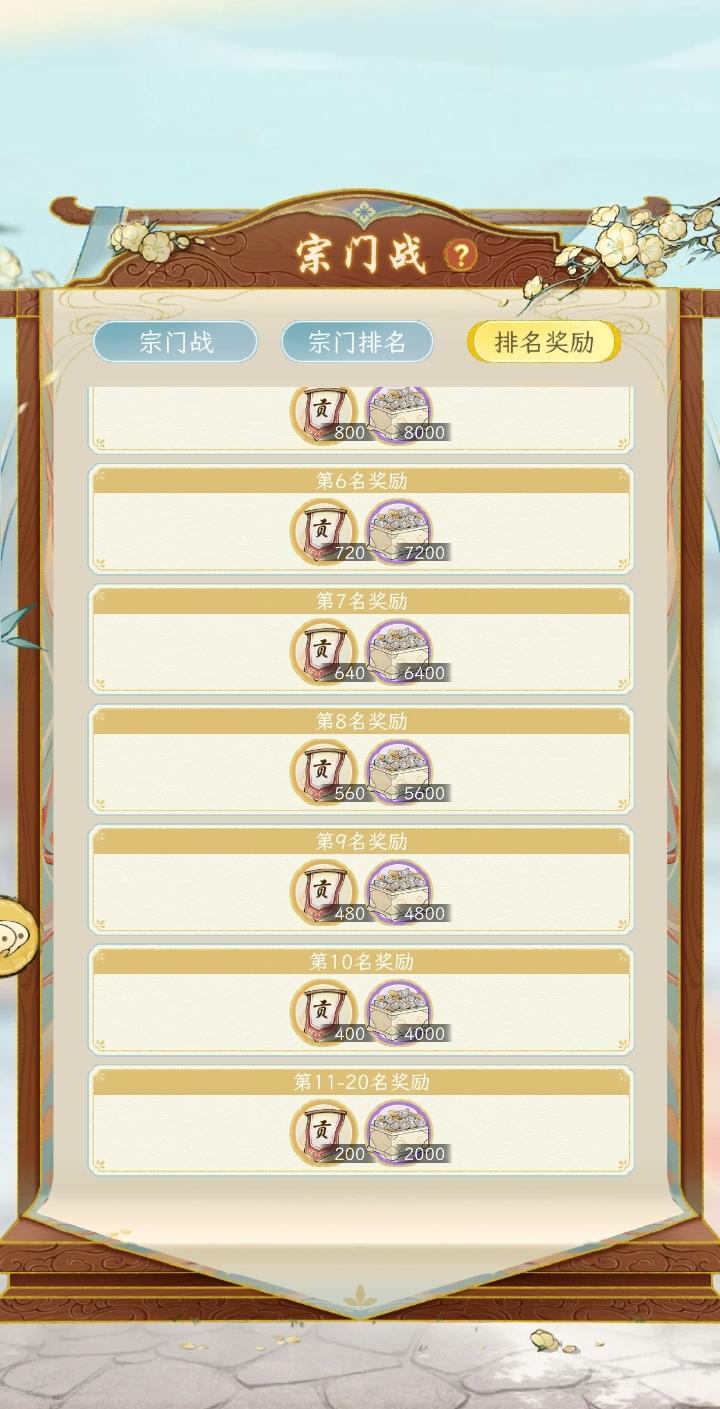 已知1:宗门战排名第一2000贡献,第二排名第二1600贡献...十名开外200贡献。我宗门:5个玩家抱团,因按照实力匹配的坑爹机制拿第二,得1600贡献。单人宗门:默认十名开外,得200分。已知2:战利品6折甚至更低宗门贡献就能换取,且有铜币没法获取的战利品。这里综合看成100贡献换等价宗门商店200贡献的物品,每个战利品赚100贡献的差值。5人抱团收益=战利品数量/5人平分*100贡献