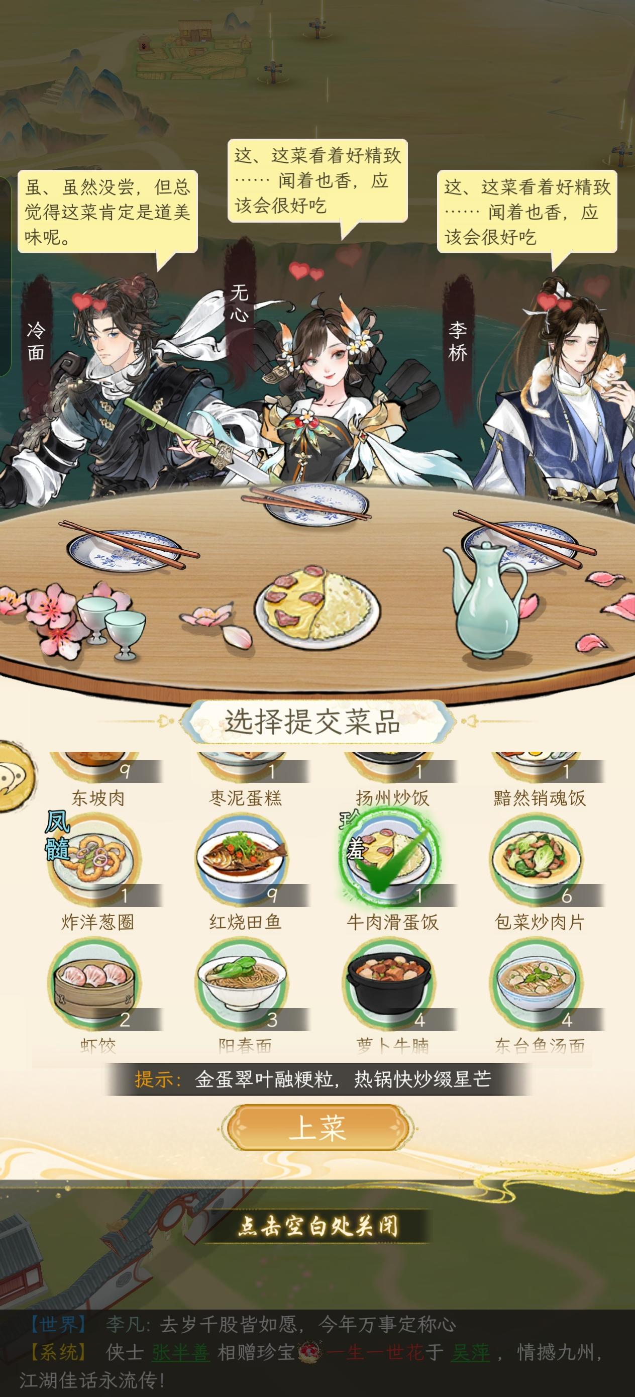合适的:柠檬辣鱼。配方:鱼肉➕辣椒➕柠檬。特级鱼肉➕高级辣椒➕高级柠檬=天赐我有511魅力值,交了6000多分,见p2。#华夏千秋