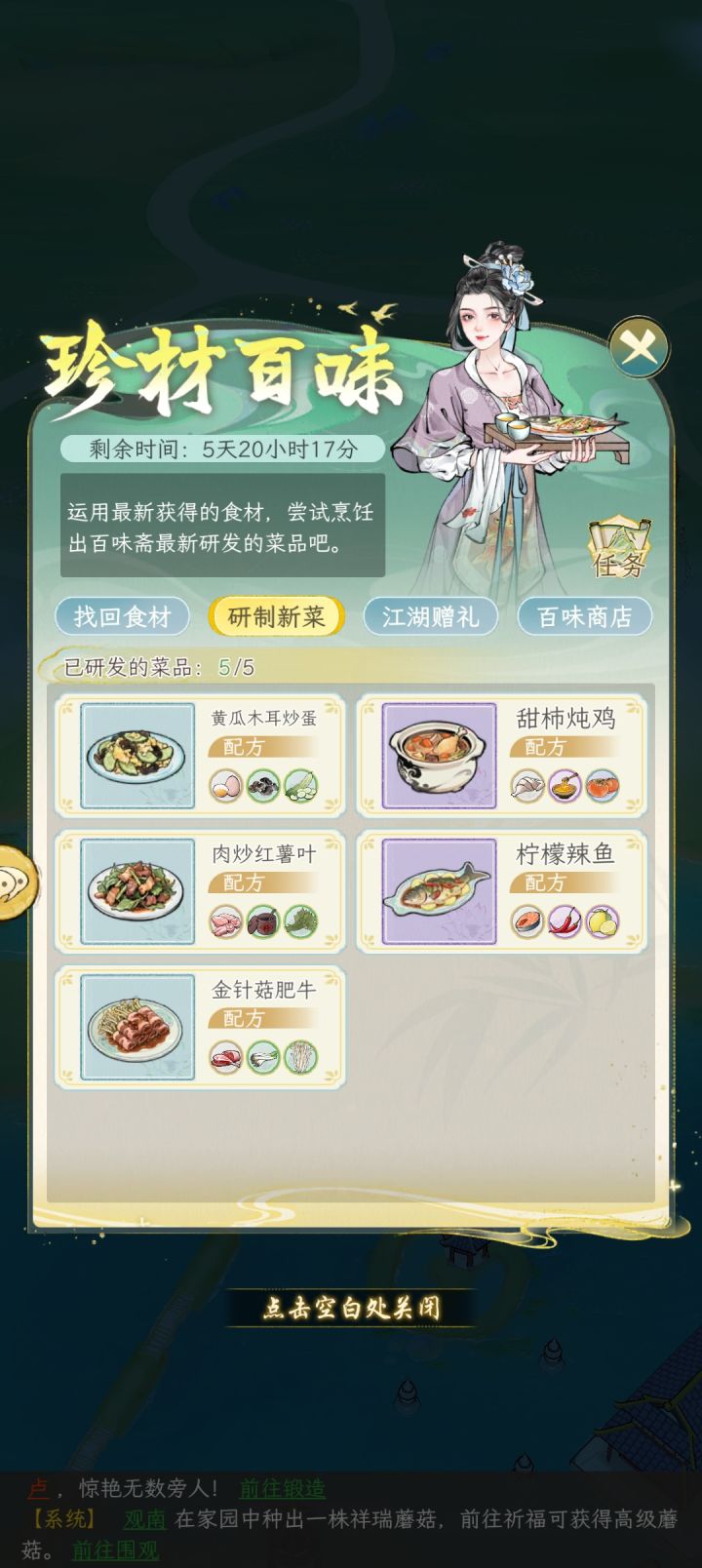 阅前须知。当两个食材在菜谱中呈现【平级平质】情况,可直接置换 。例如普通木耳+高级黄瓜=高级木耳+普通黄瓜甜柿炖鸡普通鸡肉+普通蜜糖+高级柿子_紫珍馐普通鸡肉+高级蜜糖+普通柿子_金珍馐高级鸡肉+普通蜜糖+普通柿子_紫珍馐高级鸡肉+普通蜜糖+高级柿子_紫玉饯特级鸡肉+普通蜜糖+普通柿子_金玉饯特级鸡肉+普通蜜糖+高级柿子_金凤髓肉炒红薯叶普通猪肉+普通酱油+高级红薯叶_紫珍馐