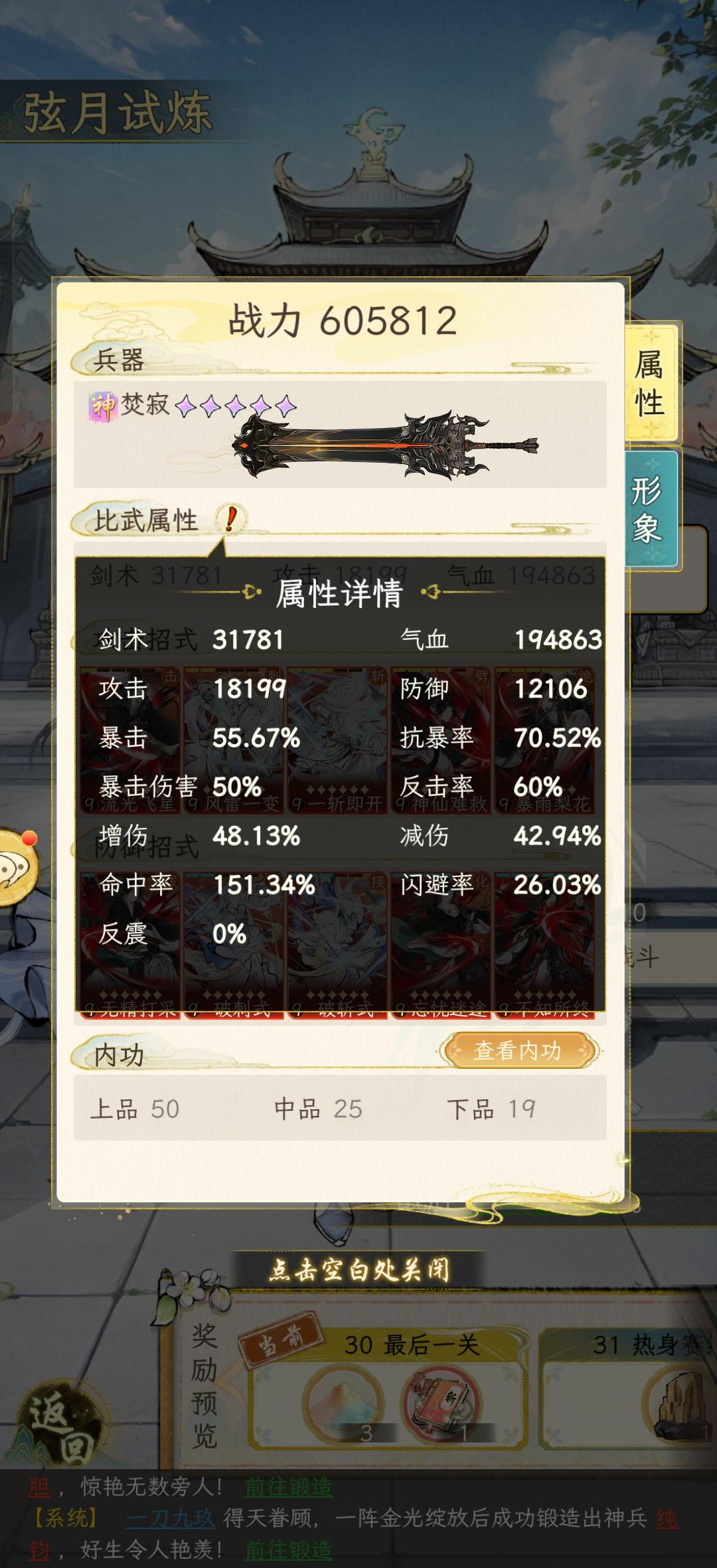 八门合一、无相神功、立地成佛、满园春色、森罗万象全部两本,再加上峨眉紫内,酒醒,清心诀……逆天了孩子,你这武馆是给中原入魔人设计的吧,我这把运气已经很好了,嘲讽绝/斩都没有被挡,成功挂上嘲讽了,最后越女劈收尾竟然连对方皮都没刮掉一层,离谱离谱,充钱不够导致的呗