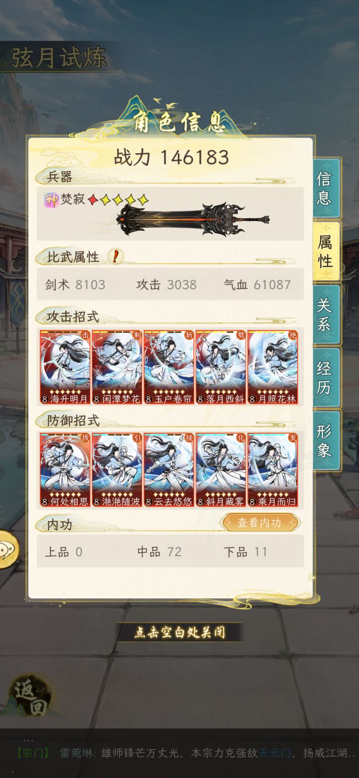 本来昨天晚上想试试打试炼的,但是陈佬昨天晚上刚好给试炼通掉了,只能拿魔人参考一下。听说试炼就是拿凤凰火过掉的。存在凤凰火时只要对面出手了就要吃反伤,其实这个伤害不低的(现阶段普遍剑术都有1w多),你的血量会被压回不上来会很难受的。pvp我个人感觉是优神驹外功的,防御的话给的数值不是很高,外功推荐抽劈绝。内功还是命中反击之类的给数值的内功。