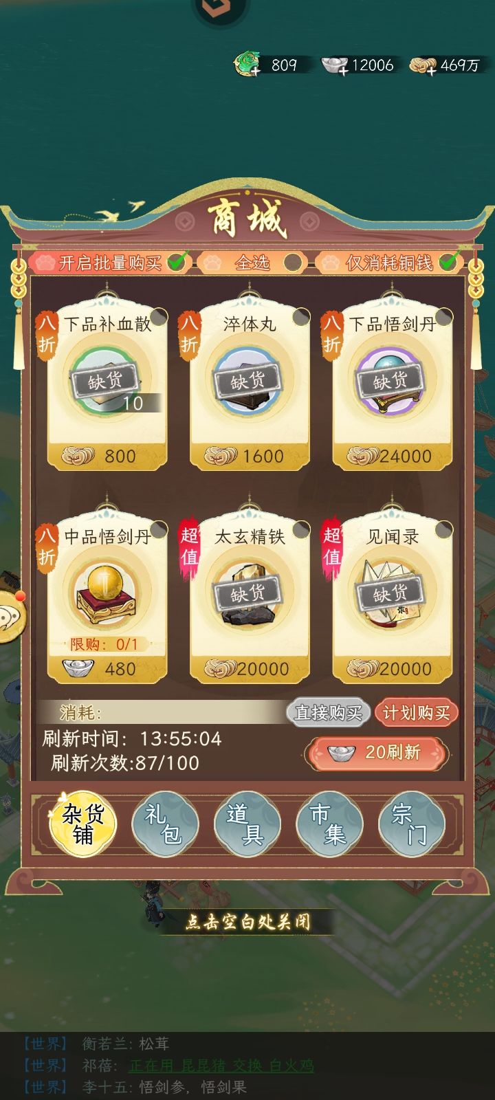 商店是不是只刷铜钱的就行了?
