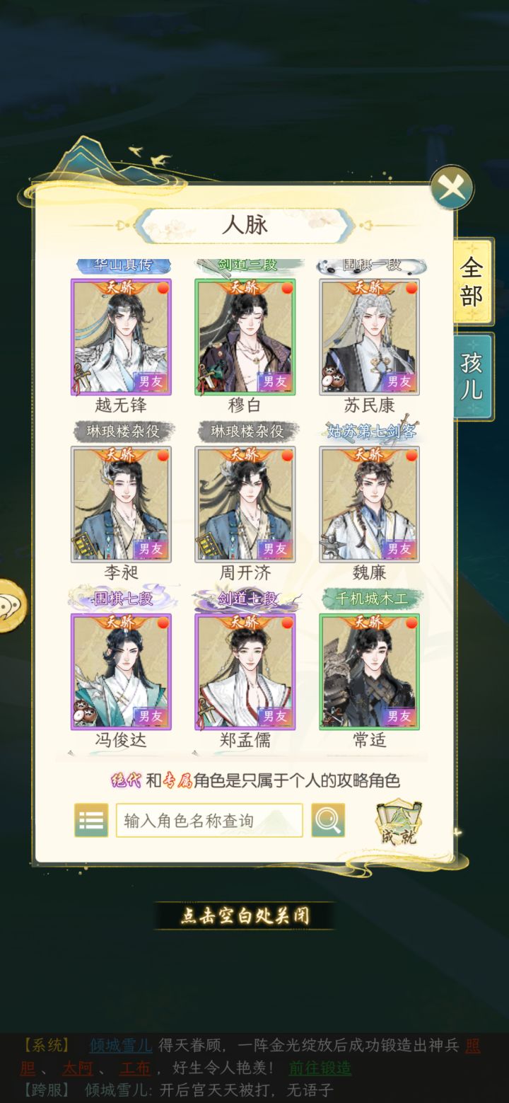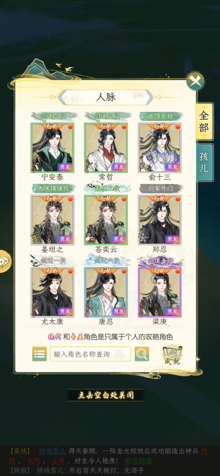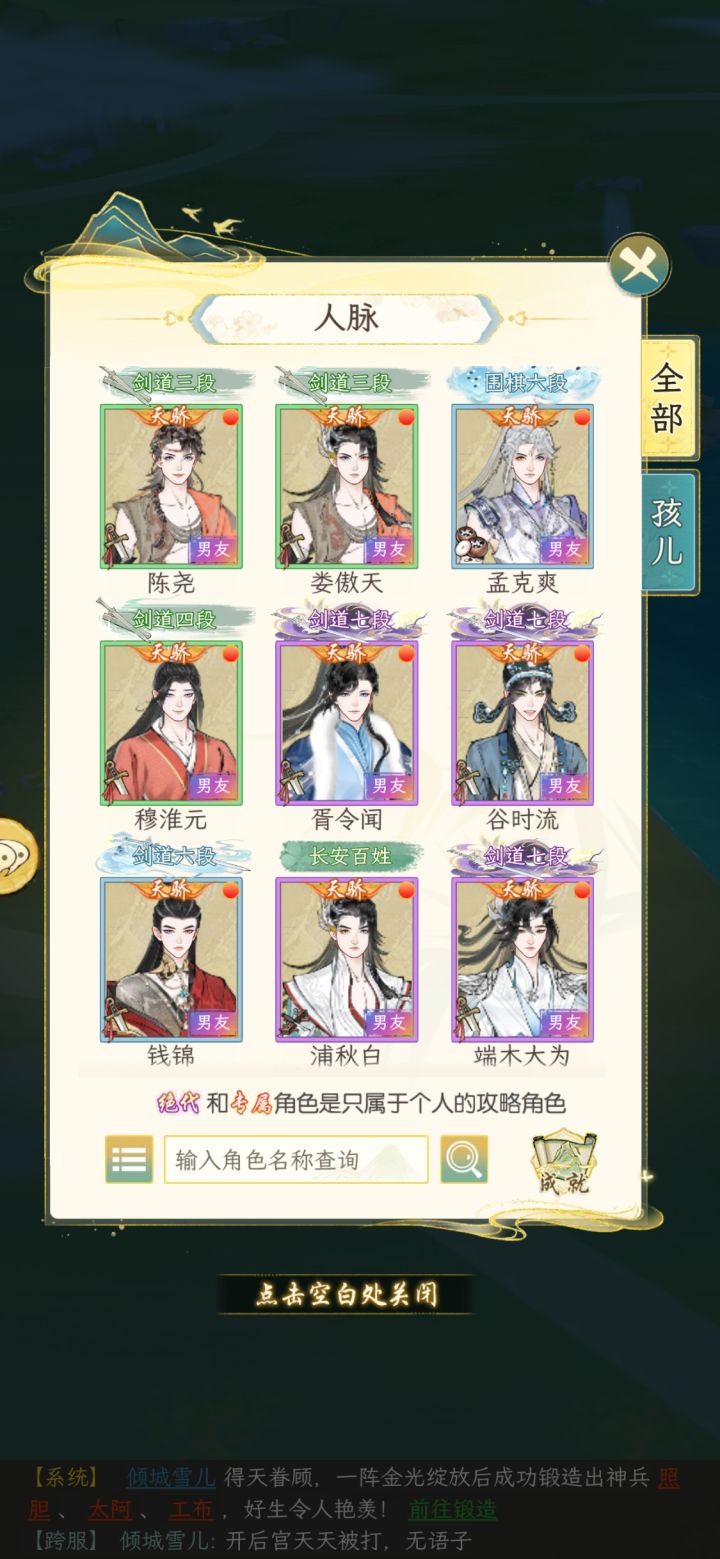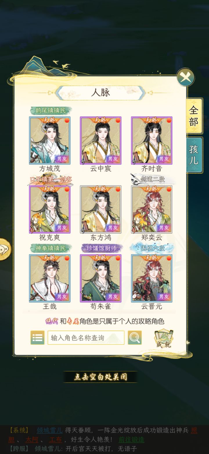 是这样的,把这款华夏千秋单机游戏玩成了乙女恋爱游戏,全服我是第一个。所有专属和绝代都满攻略了,还有好看的天骄和普通小哥哥,各个都是雪儿严选(姿色绝对是数一数二,名字也好听)。我数了一下,目前一共有380个男友,1个老公。别问我怎么玩的,没有氪金,就氪了喵喵助手,目前近25万战力,家园早就满等级了。 #华夏千秋 #我在华夏千秋谈恋爱 #华夏千秋人脉 #华夏千秋剧情