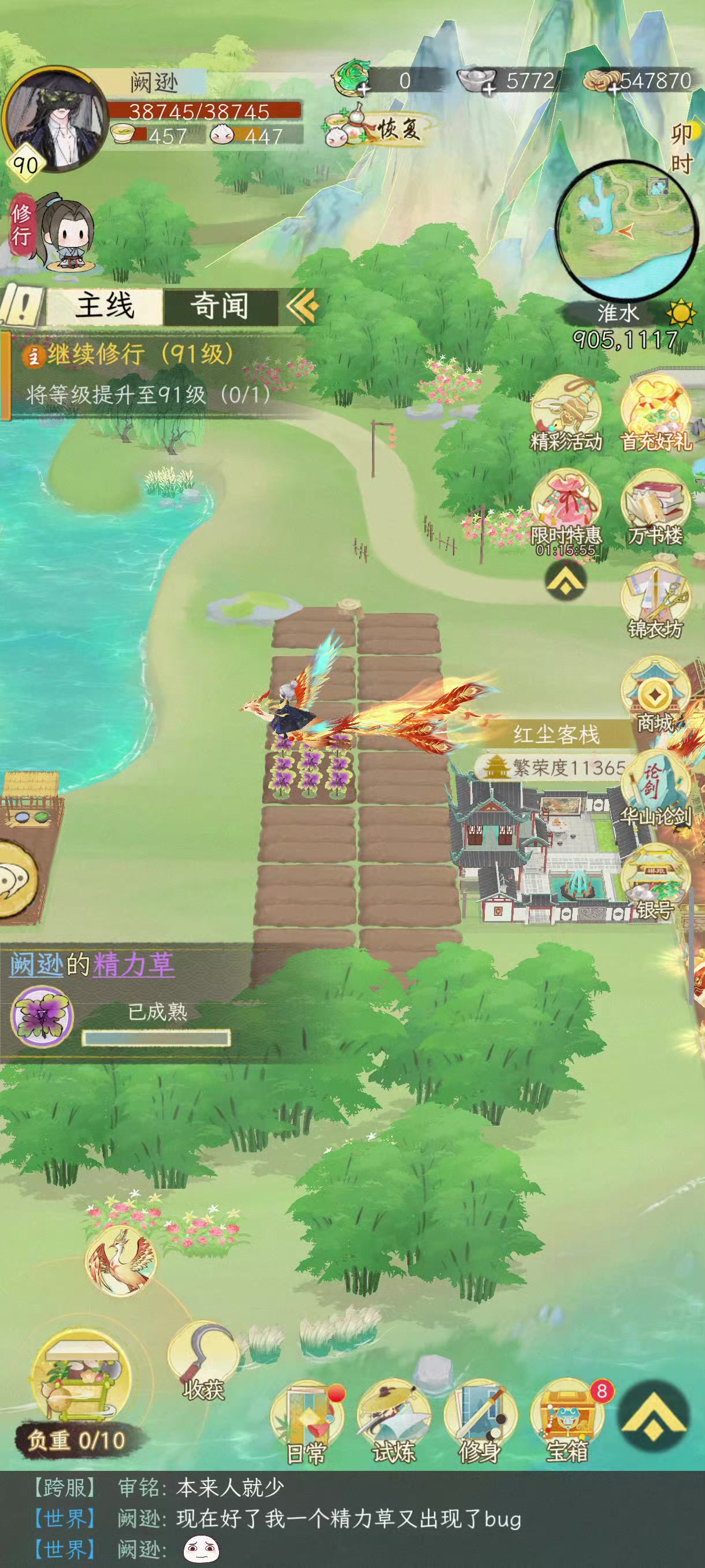 我种出两个精力草,收掉一个,还有一个出现了这个bug,在十几分钟前我的一个白菜还出现了这个bug,这个狗屎bug每天都会出现,时不时吞产物,指不定哪天就吞掉重要的产物,致敬沙币游戏的不作为。