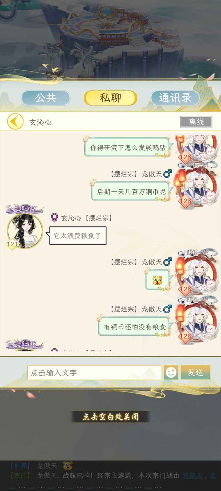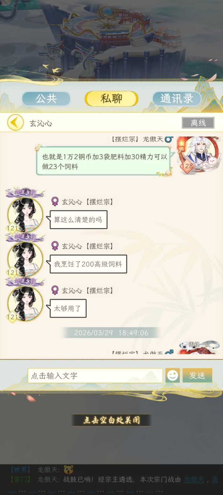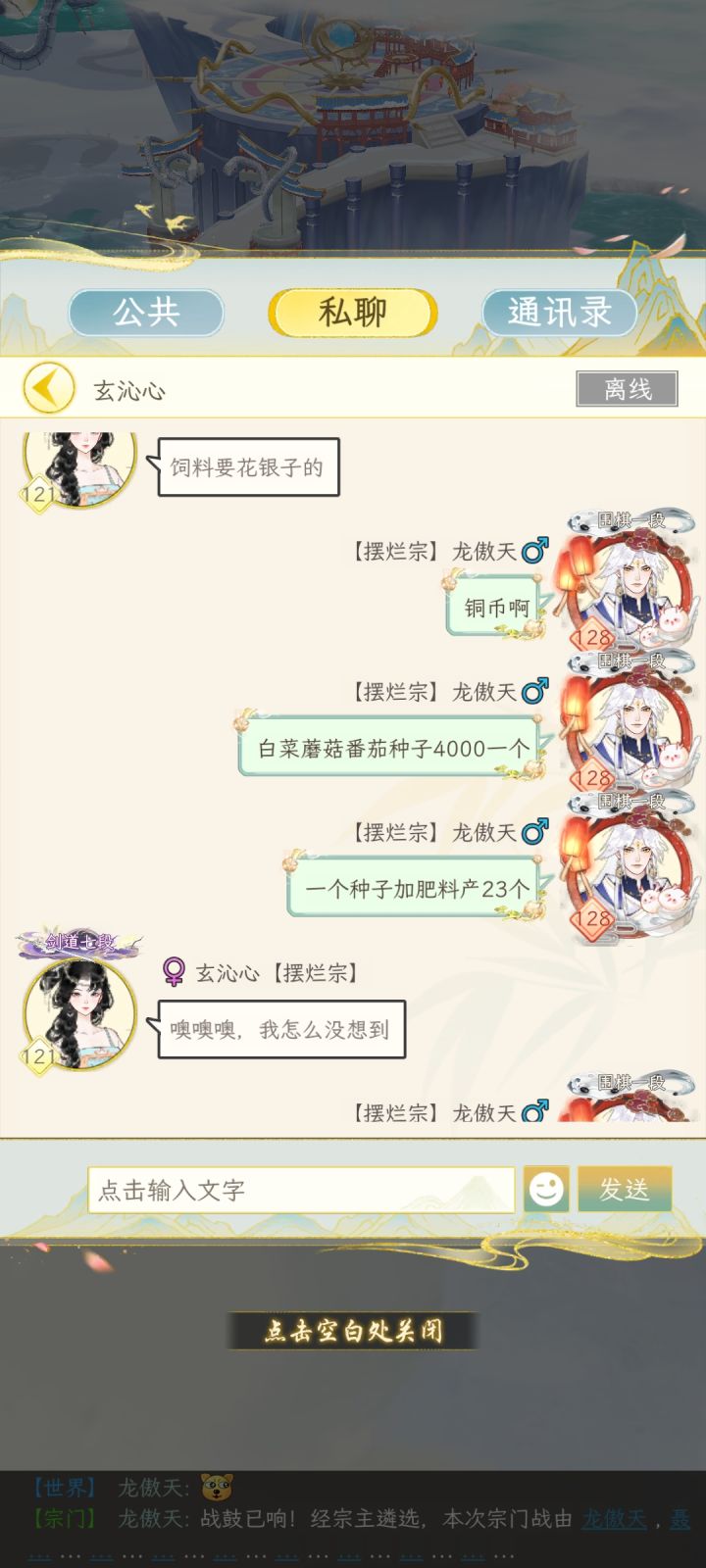 去看了看宗门里小朋友的家园,发现发展甚至不如我开区两天的小号。 这是教完之后的仙家对话