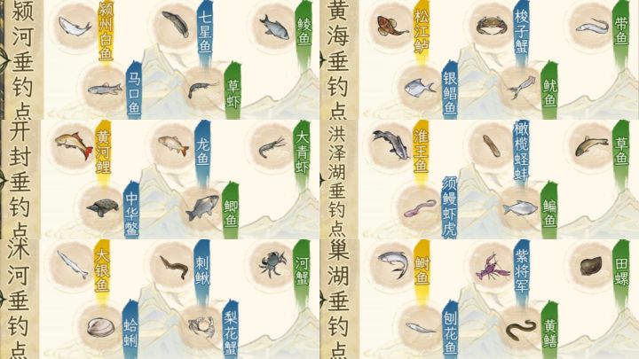 🔴按照品质分类了,p12是肉菜,p3是素菜,p4是甜品,p5是酒,基本上全验证过能做出来,如有错误会及时修改🔵商城-集市-食材,购买一些不能种植打猎钓鱼获得的食材❗麦子,白糖,酒曲,酱油,醋,卤水铜钱购买❗蜜糖,鱼翅,鲍鱼,海参,金华火腿,燕窝白银购买⚫东钱湖垂钓点钓明虾分解获取虾肉,鄱阳湖垂钓点钓大闸蟹分解获取蟹肉,衢江垂钓点钓甲鱼获取甲鱼肉🔴增加了江南淮水两地图钓鱼点掉落二编:增加