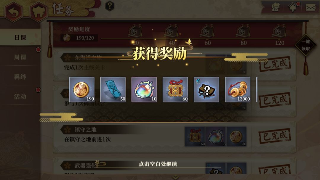 ◇刻之印降神 [刻]薙之助◇ 活动时间:7/14 10:00 ~ 7/21 05:00 活动等级:10级 活动详情: 本期武士:[刻]薙之助(绯/金) 【降神规则】 1.20次降神之内必得[金]阶及以上武士!(仅限1次) 2. 120次降神之内必得[绯]阶武士!(仅限1次) 3.150次降神后可额外获得当期概率提升的[绯]阶武士!(仅限1次) ◇刻之印降神 [刻]恶毒王◇ 活动时间: