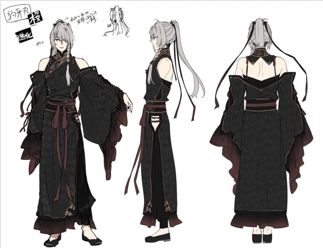 沉睡的光与影正在进行中,公主大人回到中津国和鬼族兄弟见面了吗?卡帕作为情报调查员,时刻记得挖掘中津国的内部消息诶嘿嘿~ 在卡帕的不懈努力下,今天,卡帕带着读老师亲自绘制的鬼族兄弟设定草稿来啦!让公主大人魂牵梦萦的鬼族兄弟在诞生的时候是怎样的呢?快来跟卡帕一起看看吧~ 狗牙丸(进化)设定草稿(绘:读) 啊呀!狗牙丸大人这优秀的肩颈线、蓬松的发量、飘逸灵动的衣袖,呜呜,卡帕已经被读老师的神迹美昏。(卡