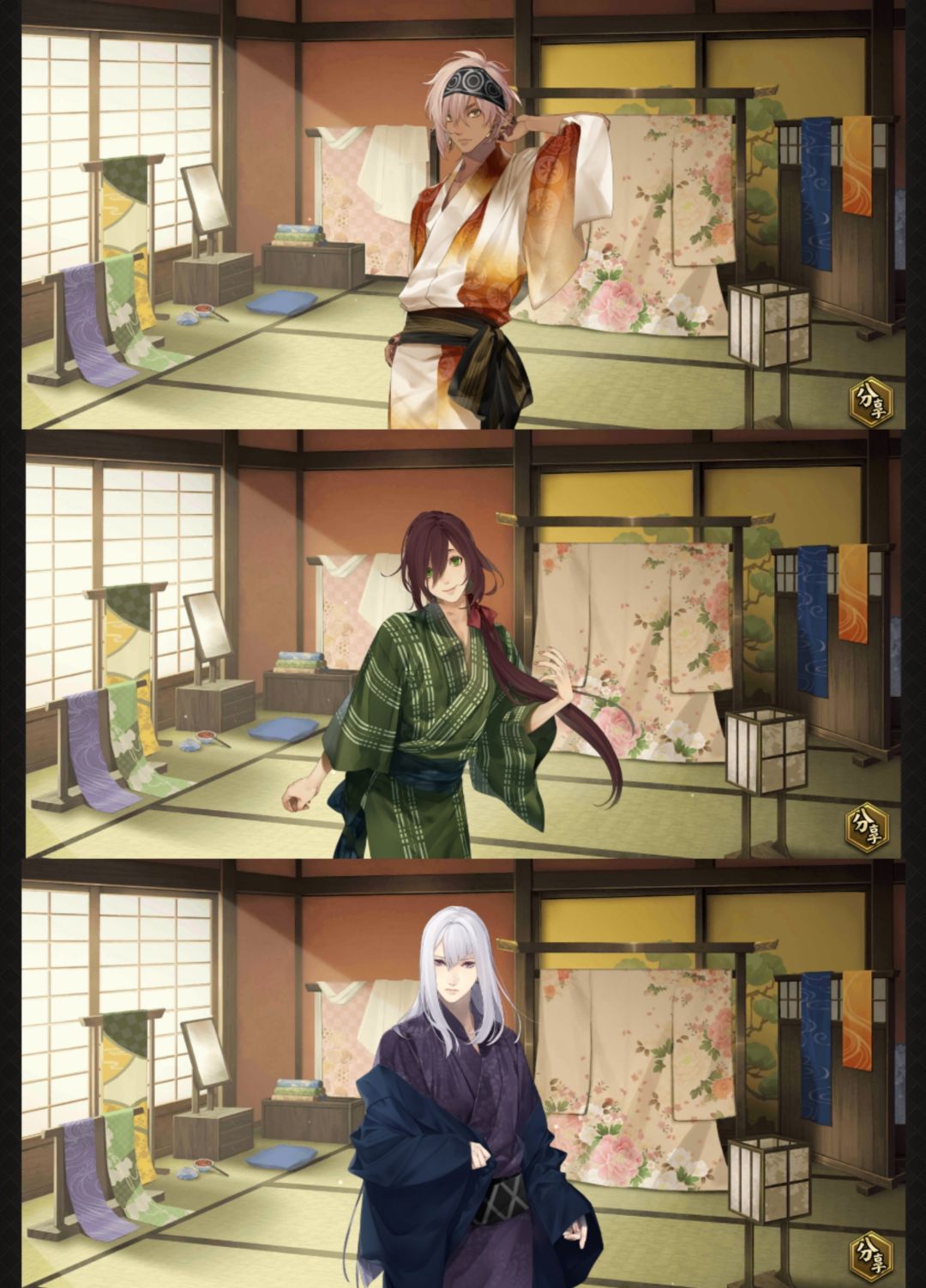 诶嘿,又是卡帕的福利时间! 相信各位公主已经在中津国和九十九丸、缘、鹭原左京开启故事啦,每天都能看到三位美男子真是太幸福啦! 卡帕每天都沉浸在他们的美貌中不可自拔,公主大人也是这样吗? 于是在三位角色的美貌吸引之下,卡帕终于将小手伸向了设计大大的电脑,拿出联动壁纸来和公主大人一起分享! 公主大人们快和卡帕一起把壁纸用起来吧!中津国内这三位武士的活动仍在进行中,他们都在等待和公主大人见面哟~