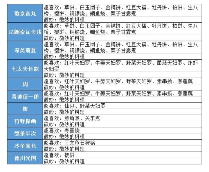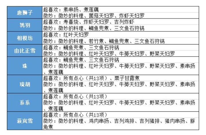 发一下关于角色食谱的攻略
