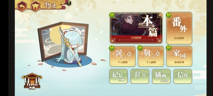 刚通关第一部时只是难过,直到看见降神页面变暗,物语页面变成了玩偶,家园里有了神棚,才意识到布都御魂他,不在了呢。