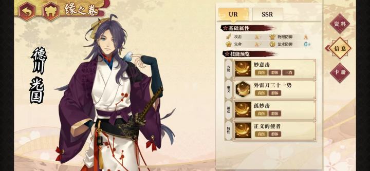 SSR新手自选16卡分别:幕府人族势力:光国,探幽,芭蕉,酒井