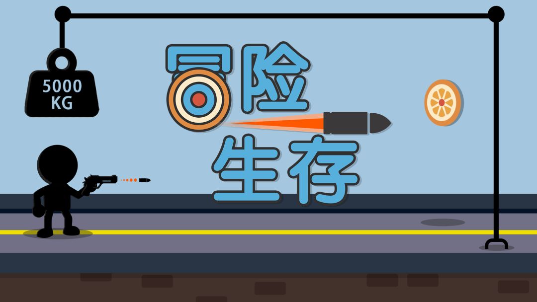 冒险生存是一款很好玩的自虐游戏,游戏中你的头顶会有一个巨大的石块,他随时可能会掉下来,但是你有一个机会,你只需要命中前面的靶子,那就可以避免危险。