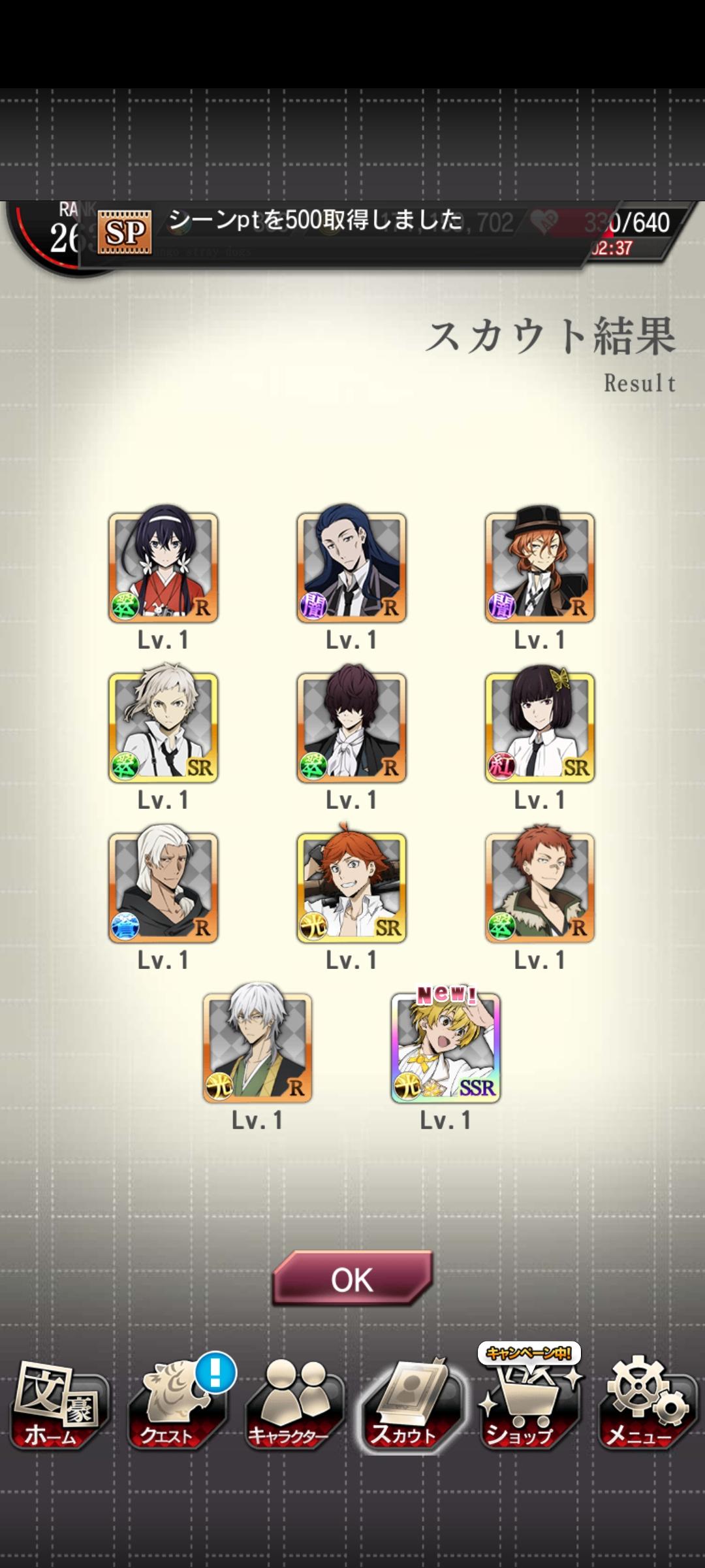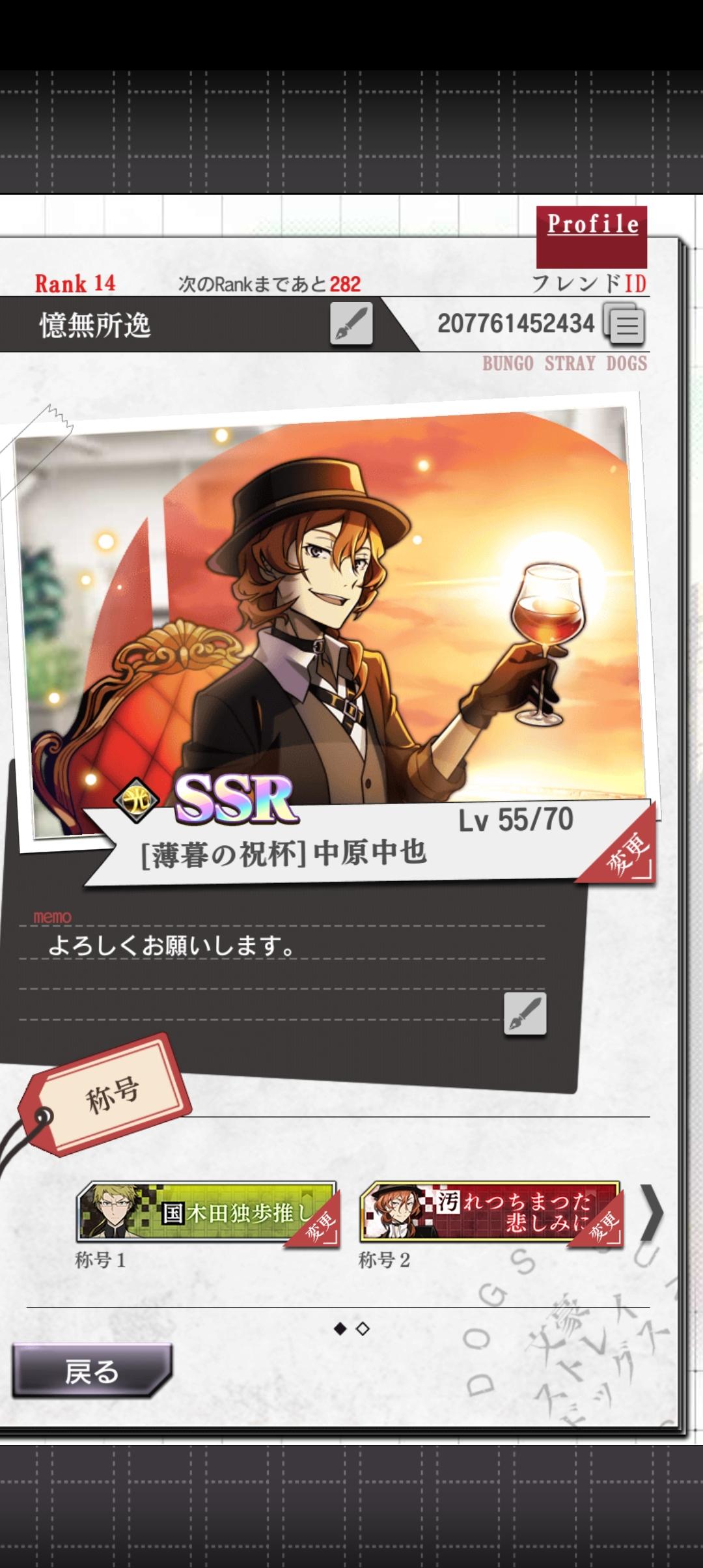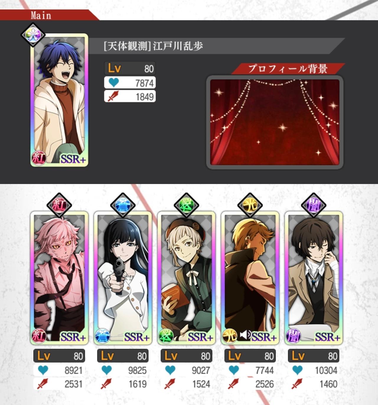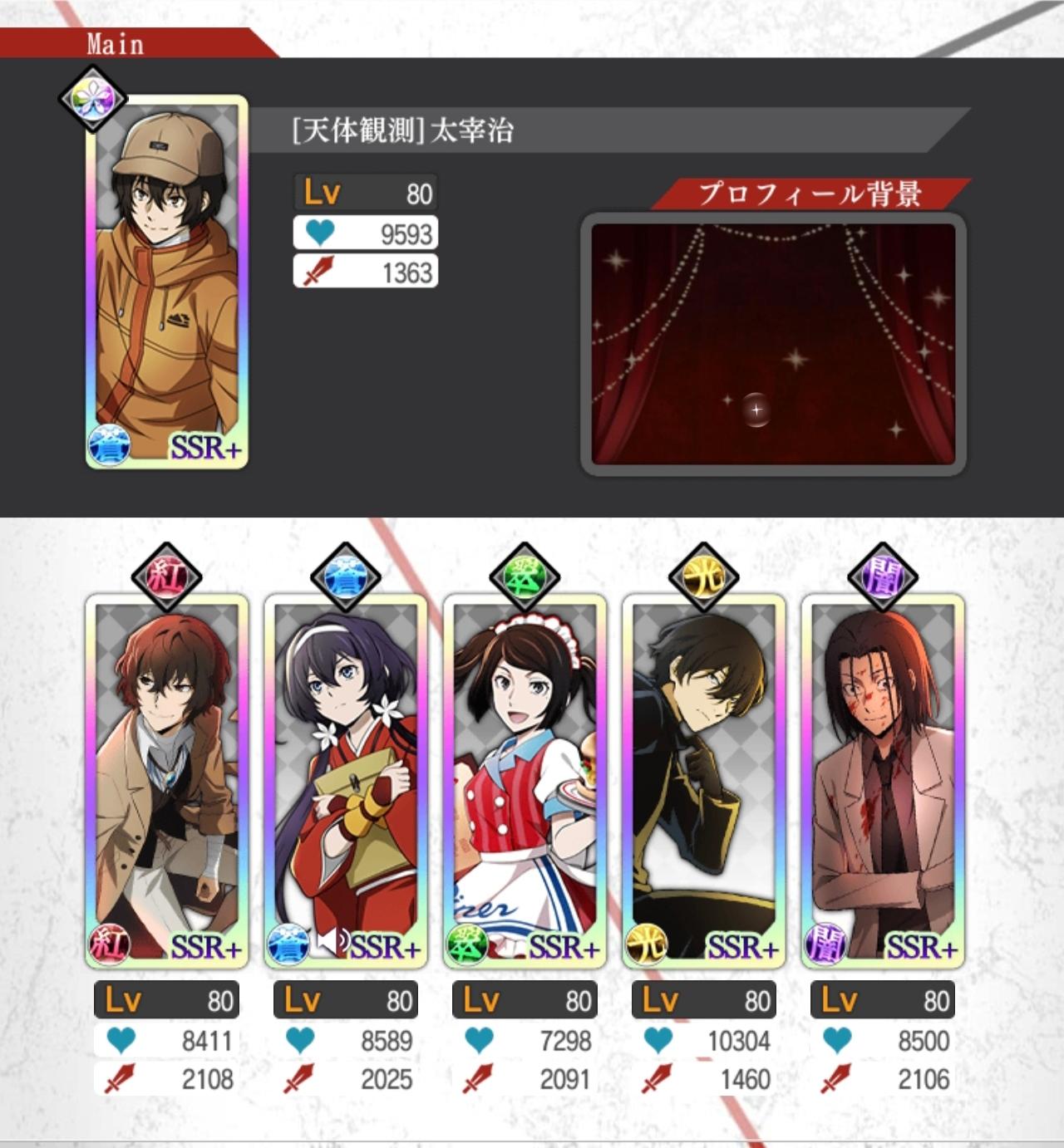 1.我是20年入坑的文野,现在一如当初,还是那个火热的中也激厨2.大概从前年开始玩文豪迷犬,有一段空窗期,没忍住,后从停了的国服转战日服3.我一直都没啥玩家朋友,自己摸索着玩,零氪,遇到让我多巴胺分泌过多的池子我就抽,其中有因为抽到了激动过,没抽中还叠普池消沉过。现在心态还好,但是今天翻图鉴的时候,发现,我那号好歹玩一年了,参差的ssr告诉我我还是未变的非酋体质,暴风哭泣4.还有,今年我发现