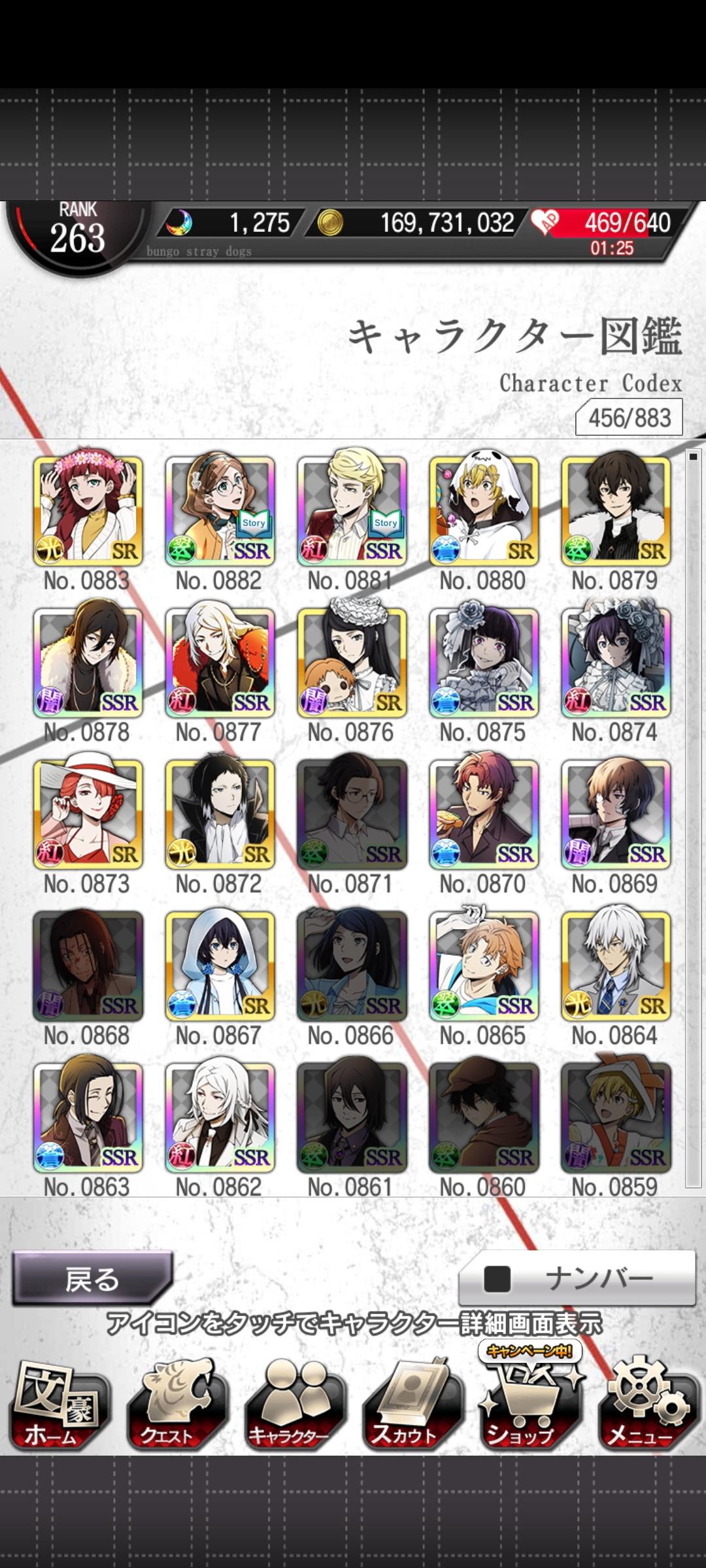 1.我是20年入坑的文野,现在一如当初,还是那个火热的中也激厨2.大概从前年开始玩文豪迷犬,有一段空窗期,没忍住,后从停了的国服转战日服3.我一直都没啥玩家朋友,自己摸索着玩,零氪,遇到让我多巴胺分泌过多的池子我就抽,其中有因为抽到了激动过,没抽中还叠普池消沉过。现在心态还好,但是今天翻图鉴的时候,发现,我那号好歹玩一年了,参差的ssr告诉我我还是未变的非酋体质,暴风哭泣4.还有,今年我发现