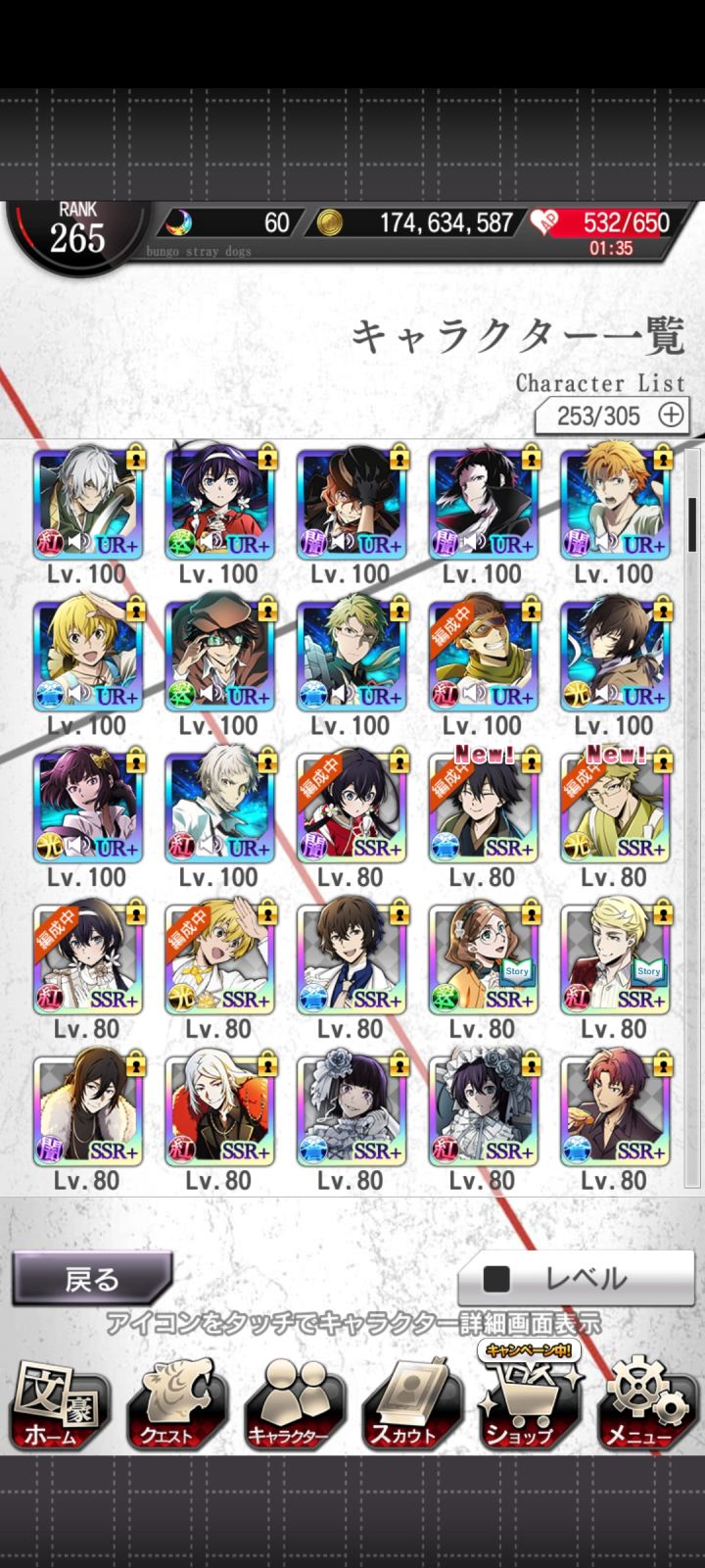 1.我是20年入坑的文野,现在一如当初,还是那个火热的中也激厨2.大概从前年开始玩文豪迷犬,有一段空窗期,没忍住,后从停了的国服转战日服3.我一直都没啥玩家朋友,自己摸索着玩,零氪,遇到让我多巴胺分泌过多的池子我就抽,其中有因为抽到了激动过,没抽中还叠普池消沉过。现在心态还好,但是今天翻图鉴的时候,发现,我那号好歹玩一年了,参差的ssr告诉我我还是未变的非酋体质,暴风哭泣4.还有,今年我发现