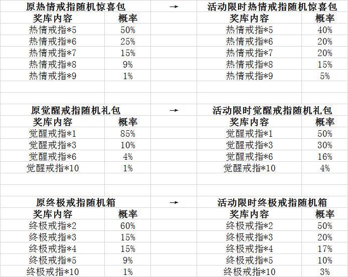 活动一、每日整点登陆领福利 活动时间:5月3日-5月9日 每日19:00-22:00 活动内容:活动期间登陆游戏,即可领取相应游戏福利。奖励将直接发送至游戏邮箱! 活动奖励: 5月3日19:00-22:00登入可领取:热情戒指*20 5月4日19:00-22:00登入可领取:游戏币*300 5月5日19:00-22:00登入可领取:金币*20万 5月6日19:00-22:00登入可领取:装备强化材