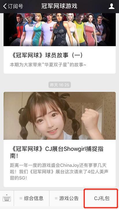 活动一、Chinajoy《冠军网球》展台免费送红卡活动时间:8月3日9:00-8月6日17:00活动内容:本次Chinajoy《冠军网球》展台不但可以体验即将上线的黑卡版本和全新球员,每位前往展台的玩家更可在体验全新版本后获得一个神秘礼包码!内含一名红卡球员!神秘礼包码包含:金币*100万,随机红卡球员*1,随机金卡球员*1,TP*60000,装备强化材料*20,装备升级材料*20,热情戒指