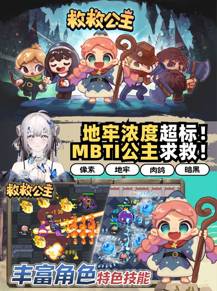 👾游戏名称:《救救公主》🏷️标签:暗黑|地牢|肉鸽|冒险|动作RPG——宝子们谁懂啊!发现像素星人的究极快乐屋噜💖通关三百层爆装备停!不!下!来!✨🫵那些让本酱尖叫的爽点: 1⃣️16型MBTI公主被绑敲黑板:现需J人营救员火速就位!INFJ公主要求先写三千字《被救可行性报告》ESTP公主正与魔王玩扑克赢回自由(?) 2⃣️多种奇葩职业战法牧癫公全图鉴(奇葩职业日常发癫实录)#休闲游戏