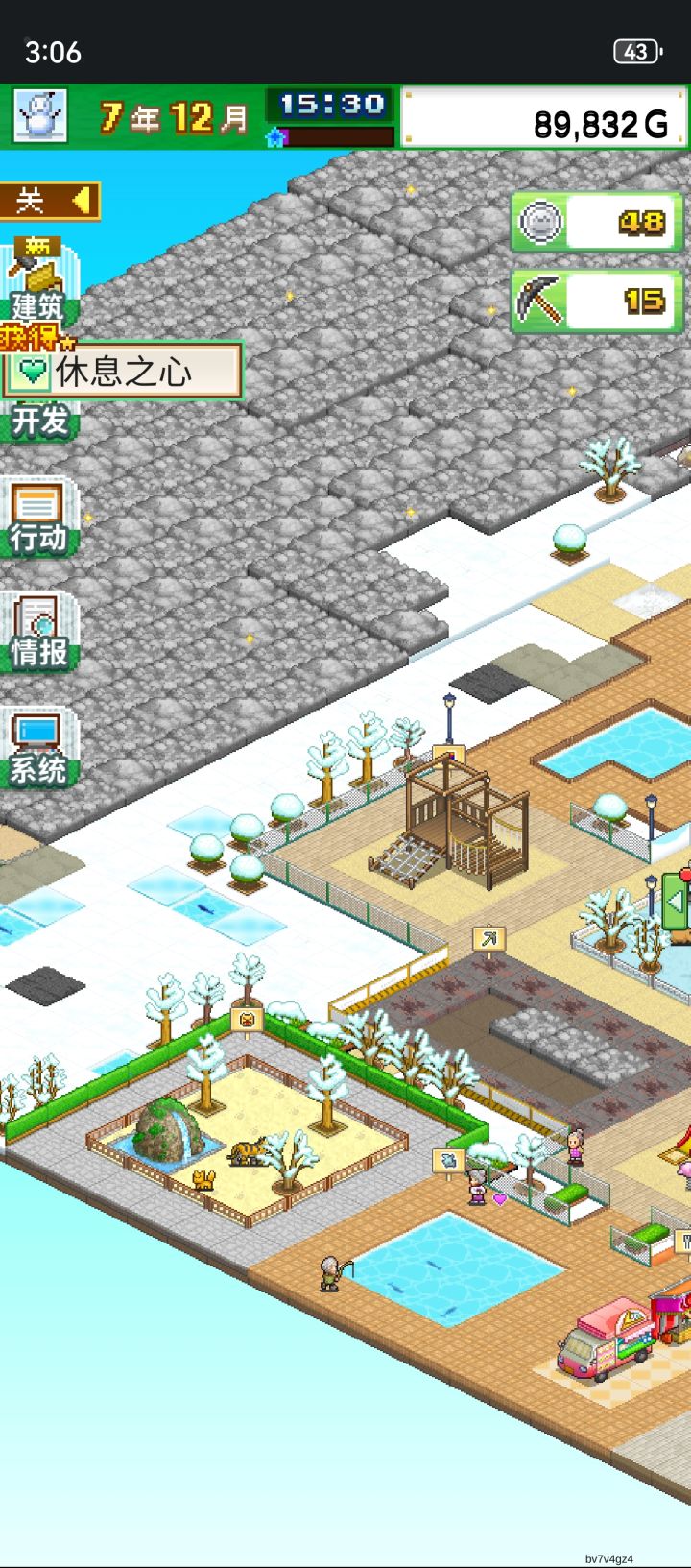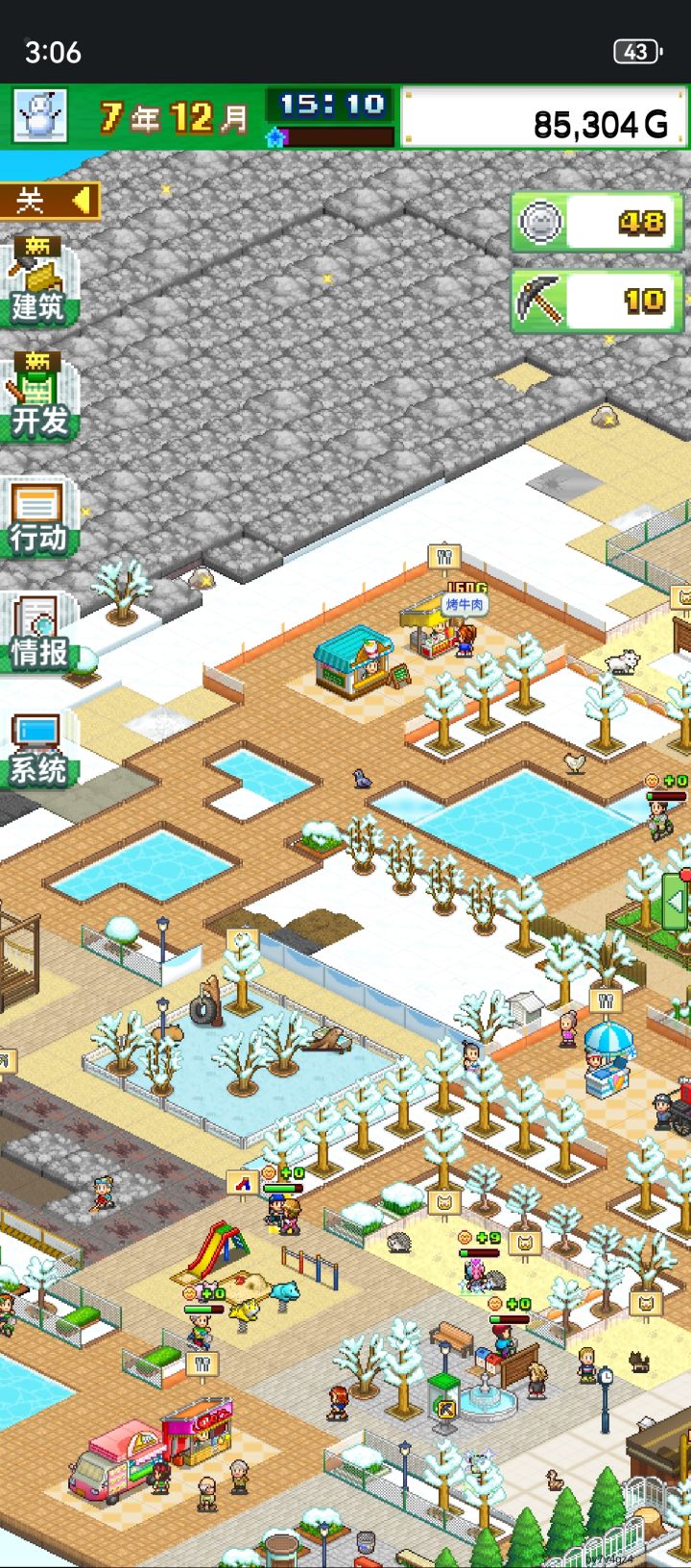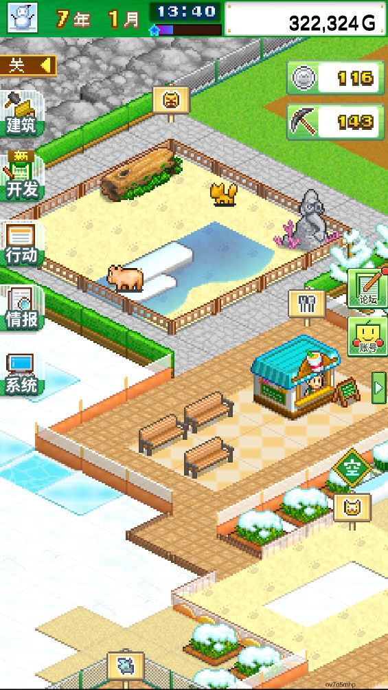 画面核心元素为各式动物+游乐美食设施+植株地块,场景不仅有日夜区分,也会按照年月进行季节变换,冬寒暑夏,春去秋来,类似于《像素牧场物语》一样,但无buff效果。