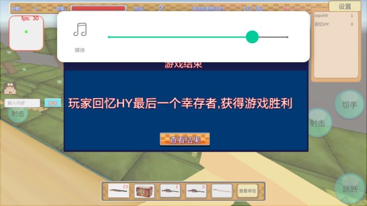 M4A1可开镜了,神器再世!游戏界面添加攻击按钮,长按可以连续攻击。穿墙bug已经修复。由于狙击枪太过暴力,已于8:20进行零时削弱处理,伤害降低一倍。地图方块数量由5000提高到8000,作图时方块尽量分散,能降低卡顿。