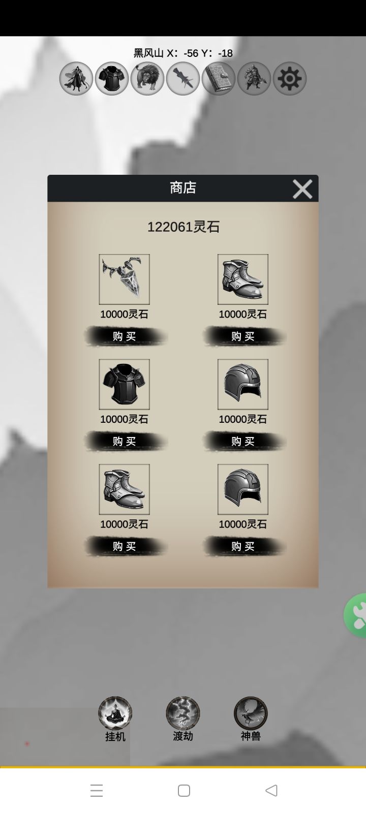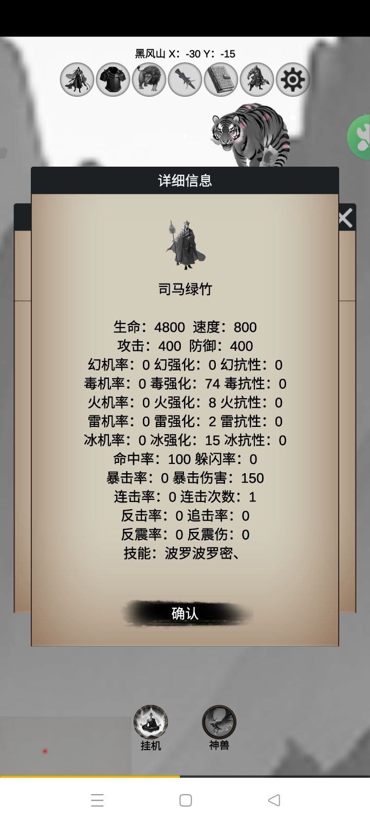 4,初始完美阵容达成,找地图上的明怪或者移动时遇到的暗怪刷修为,修为阶层提升可以加自由属性点。另外刷怪途中,下方的挂机点上可以同步领经验(点一次可以加1000次经验,有上限,次数勿浪费,不加了再点)。