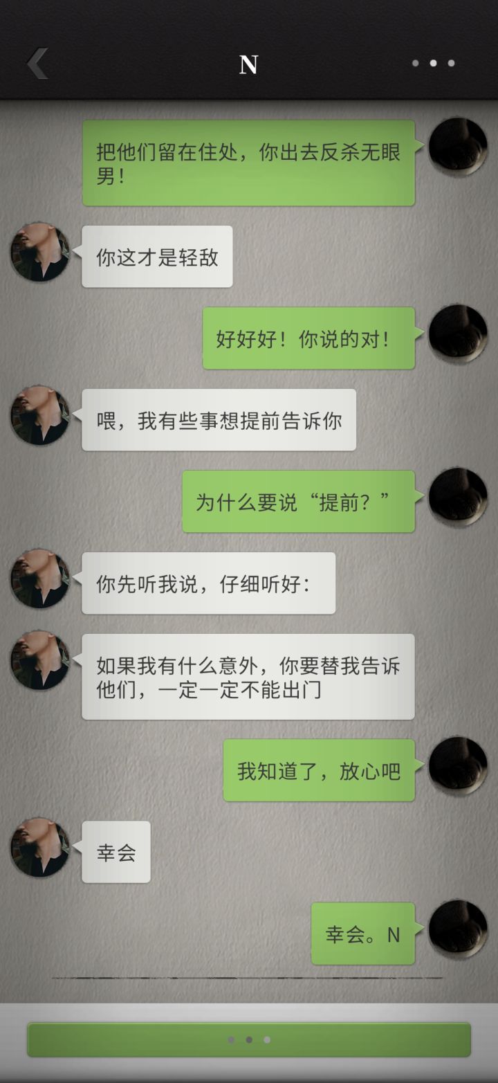 最后和他们一起告个别吧,虽然我并不是那种很感性的人,只能放三张图,其实每个人的道别都很有意义,尤其是陆泽勇,还有我后悔的一点是,在何筱磊被杀之前,我终究还是没能信任他。