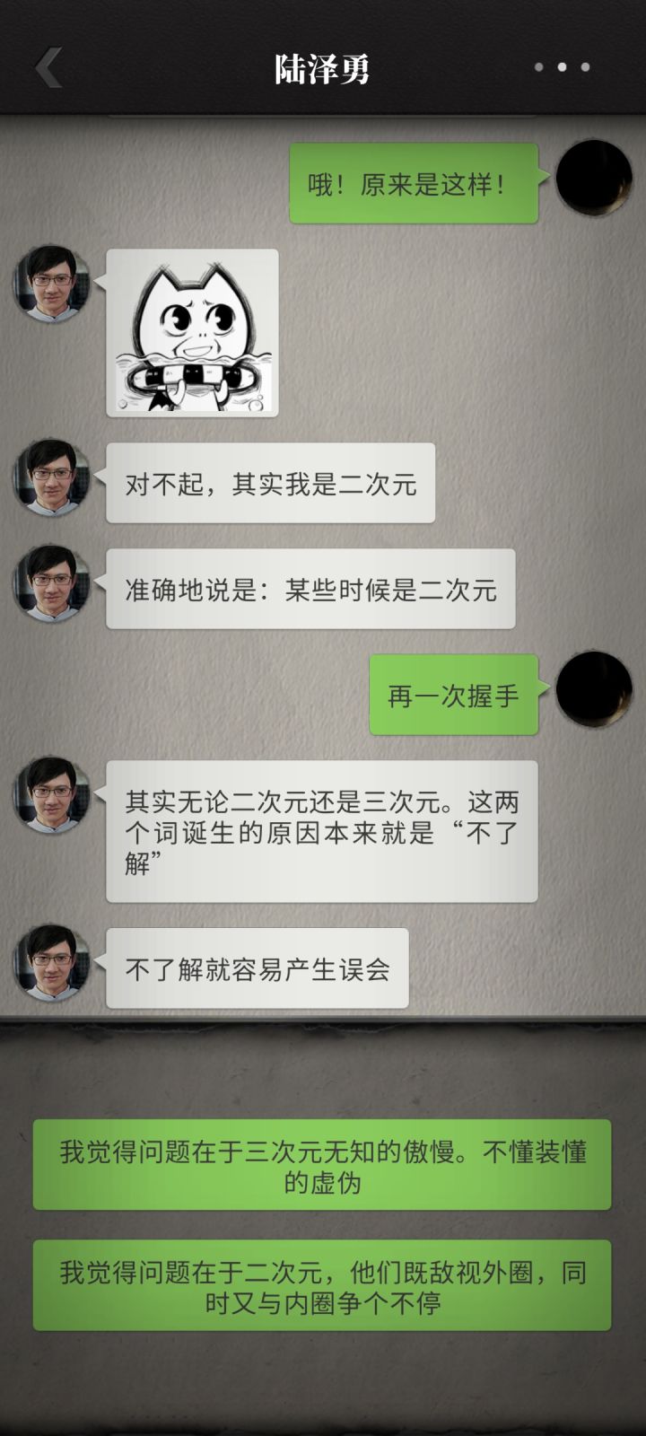陆泽勇:其实无论二次元还是三次元。这两个词诞生的原因本来就是“不了解”
