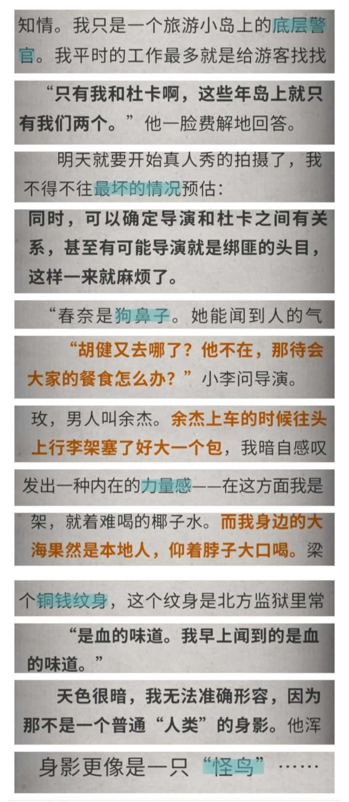 剧情中刻画的角色都不错我印象最深的就是李诗诗和和N!!!戚红梅和绍清一个是偏偏出生在八百里村这个地方另一个为了爱的人去报仇(性取向嗯……)阴差阳错的一系列事情话说真没想到是绍清做的 接下来就是第二章了不过听说风评不太好[表情_尬笑]