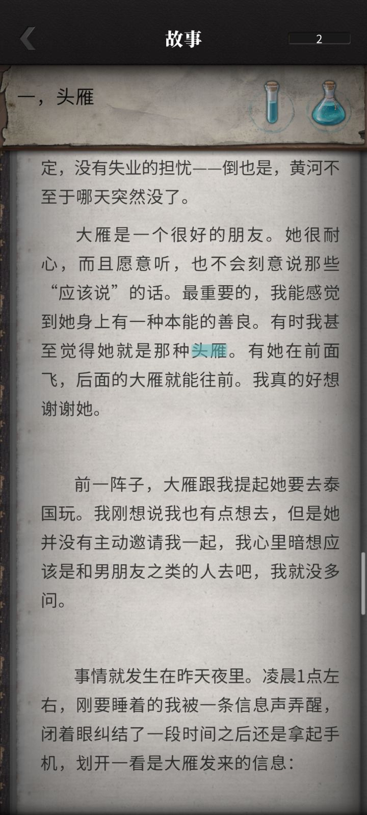 从写群像变成了写大女主爽文?剩下的NPC和玩家选项也围绕着对主角的夸夸与喜爱。而且感觉玩家回复的选项个人风格更明显了,更加偏女性化了。而且有一说一其实我不讨厌老梁这人因为就是个普通角色也没做啥坏事,但是文案给我一种想丑化他的感觉?好吧还是说我一代好久没看了把文案风格忘了其实是没换的?(再套个盾,我把两部所有内购项都买了之前的剧情全看完了我只是发表个人口味而已。)