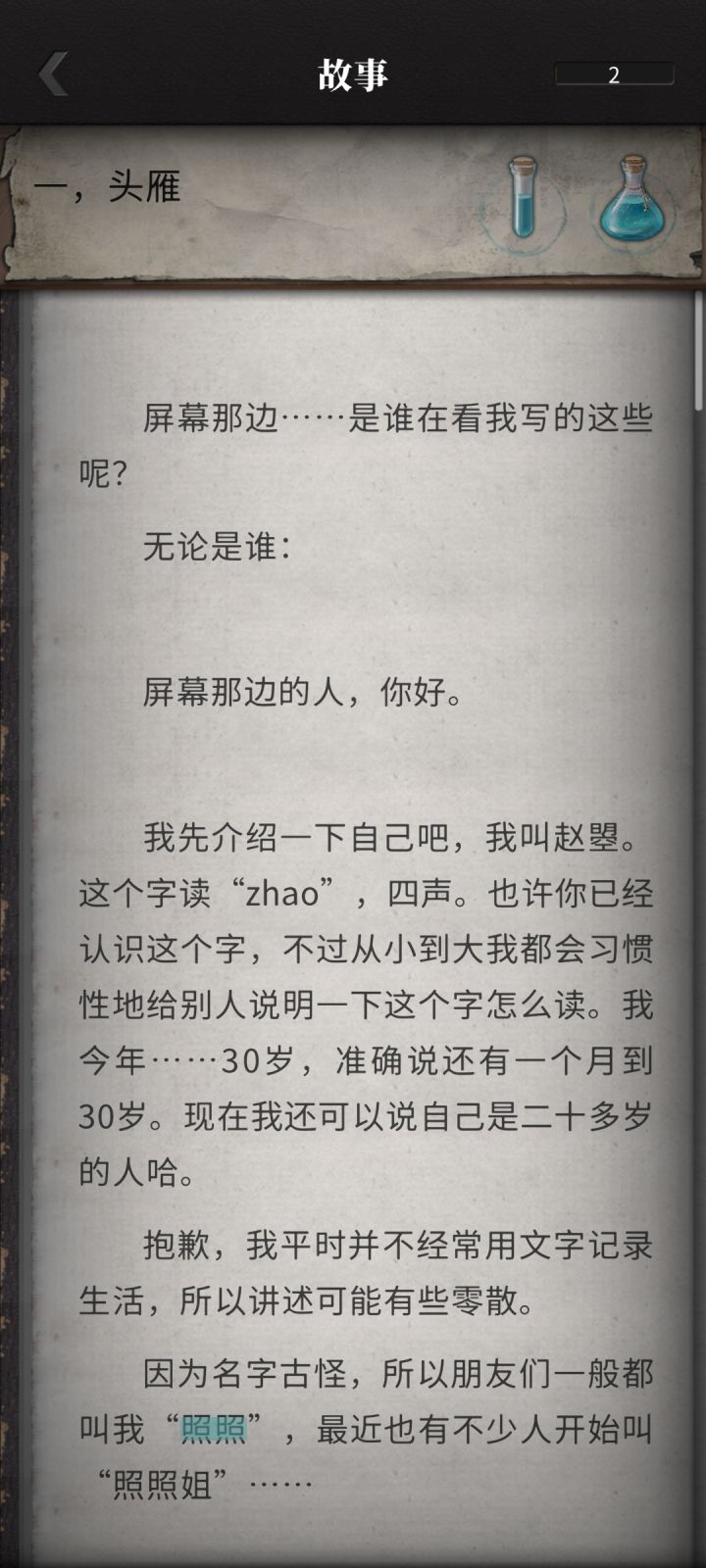 个人向,严重剧透,另外还是推荐大家自己找,至少看完一遍之后再来抄作业吧,当然最好是氪金支持一下木狼,话不多说先放照照篇第一章