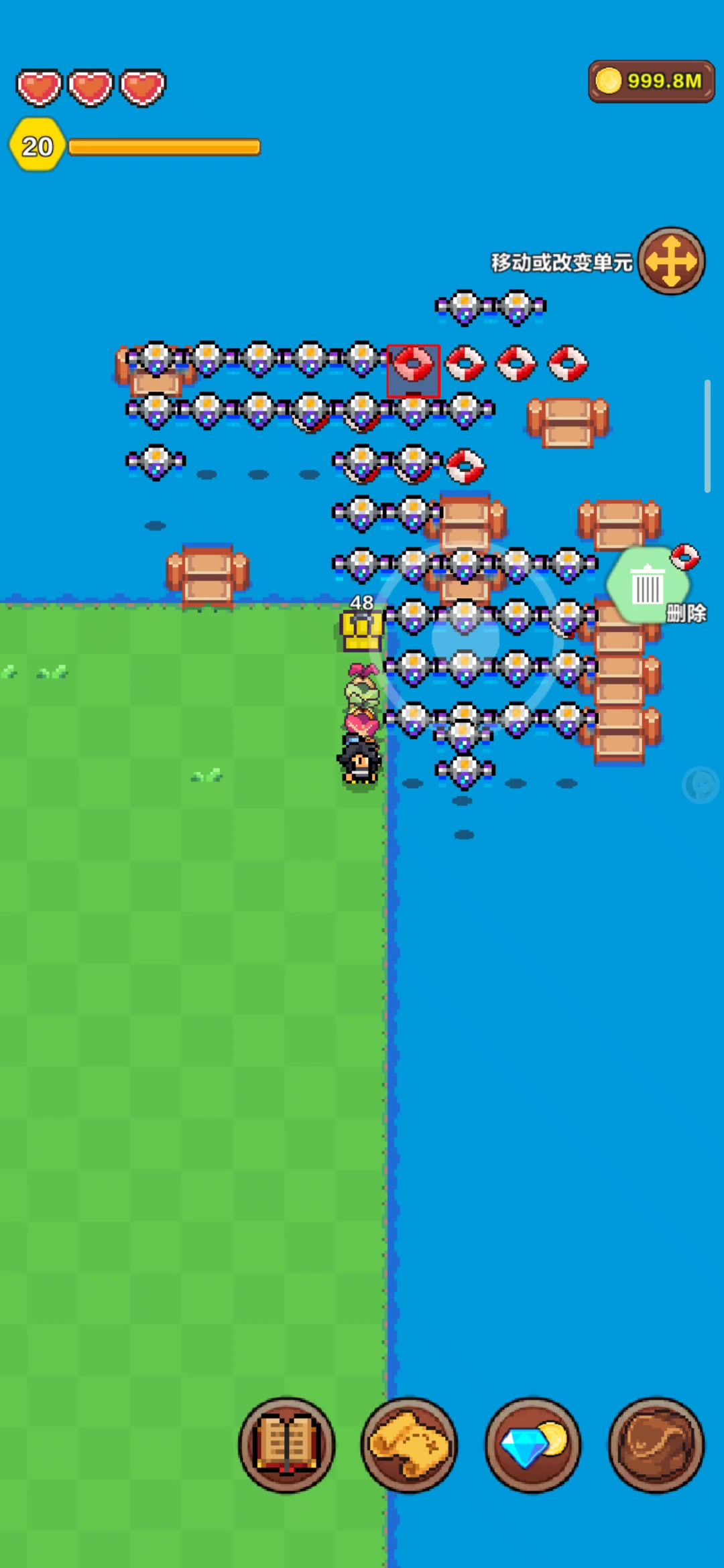 具体就是下图这样,借助水中道路先把陷阱放在海上让后撤去道路就可以,大批量的放置也可以同一个道路反复使用#海岛时光#攻略