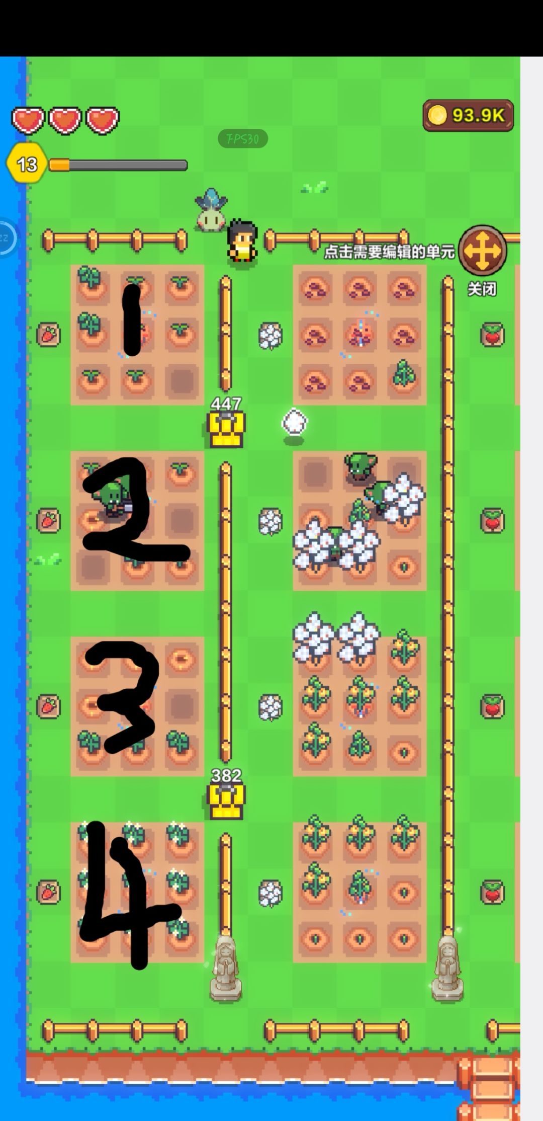 在目前版本中,最赚钱的不是是种田的稻子了但依旧是农田。而众所周知的,只有精灵可以做农活。农活需要精灵,蜂蜜也需要精灵,而田块和精灵的数量上限比例是1:1 。这就意味着若要真正的走向高产,如何更合理调用精灵才是关键。因为算法太呆比,精灵总是会做一些奇奇怪怪的事情..所以我们需要被格式化的农田规划 在这里我们直接列出一个核心数据(不要问过程,问就说经验公式: 不考虑灌溉最良配比 田块/精灵≈4/3 换