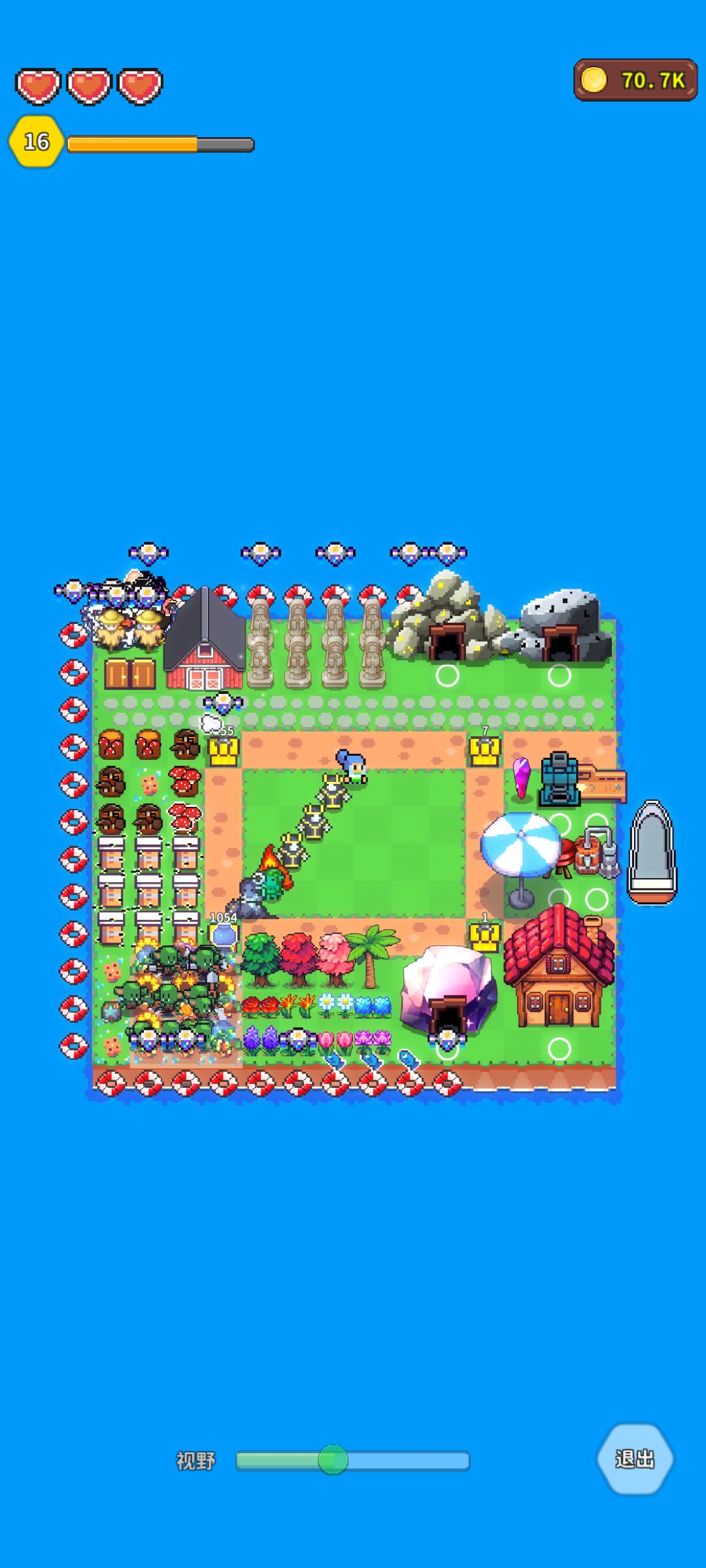 爽了!每个区域都方方正正的,连海岛都是方方正正。等满级之后,农作物和小动物就集全了(◦˙▽˙◦)然后再去看看战斗。 二编:重新装修了一下家和工作台一类的布局,又在鱼塘中间加上浮桥了。想问一下潜水捕的鱼算不算图鉴啊? 三编:30级满级纪念,鱼塘还是大改了一下[表情_翻白眼]开始我的打怪之旅 给想提前规划的朋友们提供一下种类数据: 农田的种类是26种(已包含神像给的),农田上限是60块。动物的种类是8
