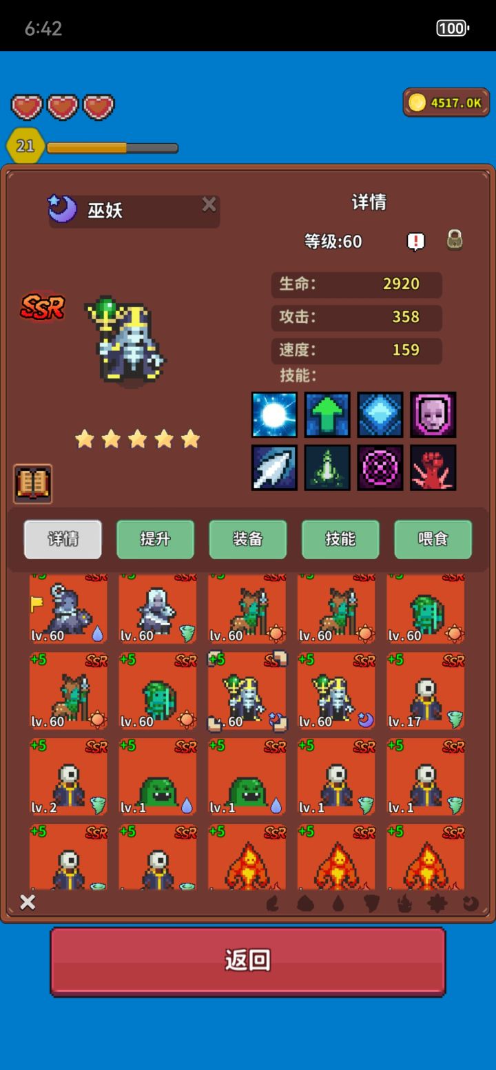 感谢各位大佬的攻略,全成就已达成。塔的要求其实没那么高,我大概是两三千币开始爬,中间100层,150层调整了一下装备,刷了一下修复就一直上去了,目前500层还有六千多币,依然可以往上,越爬币越多,越爬越轻松的感觉,爬塔队和技能按照大佬攻略整就行,没啥难度,喂食和装备基本都是全攻击,注意调一下速度,一速是树人,二速祭司,可以更充分地发挥技能效果
