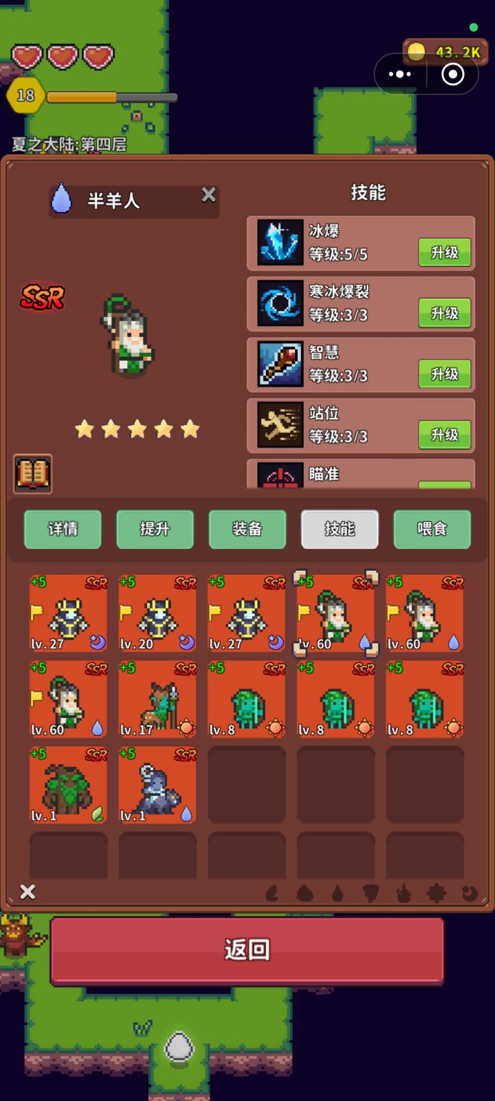 首先先说我遇到的问题;半羊人满级后,智慧技能就不生效了。打完怪之后给的经验和没带半羊人给的经验总量是一样的。我以为他是满级之后给的经验可以给别的宠物。经验也增加50%。我以为他增加的是经验的总量。所以半羊人升级是指练出三个,满级的带三个零级的半人吗?等半羊人满级之后再分解了去升级其他的宠物是这样吗?