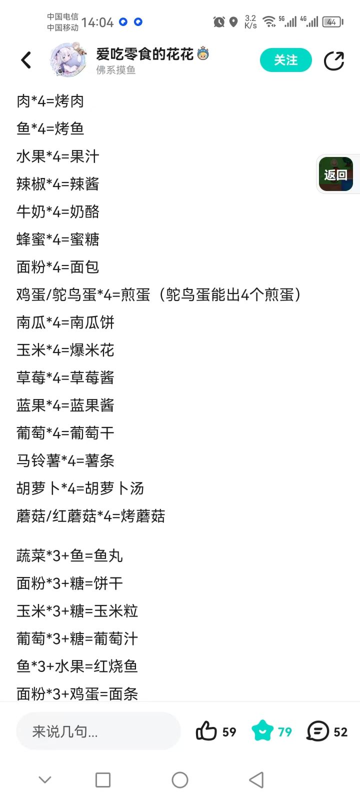 第一张是我能找得到所有菜品,第二张是做菜推荐。可能有遗漏或者一些计算错误,见谅。#海岛时光种田挖矿 #攻略