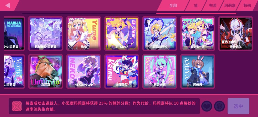 《》中,免费角色和精灵的最高得分搭配主要取决于歌曲的难度、类型以及个人的操作习惯。以下是一些常见的高分搭配建议: 小恶魔玛莉嘉+莉莉丝:这个组合非常适合高等级曲目(lv7及以上),因为小恶魔玛莉嘉在击中敌人时会有额外25%的加分,而莉莉丝能够提供一定的生存保障和支持。不过需要注意的是,小恶魔玛莉嘉血量较低,需要适时补血以避免过早死亡。 兔女郎凛+小龙女/小女巫:对于低等级曲目(lv7以下)来说,兔