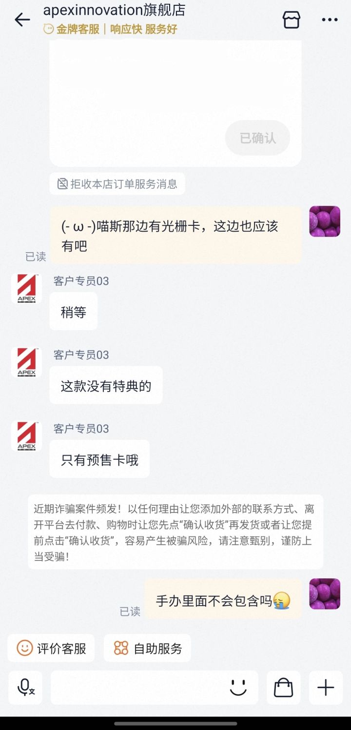 全款都是248但这次想要光栅卡的记得去喵斯官方tb店铺下定金APEX的tb店这次显示赠品是一张普通卡和卡套