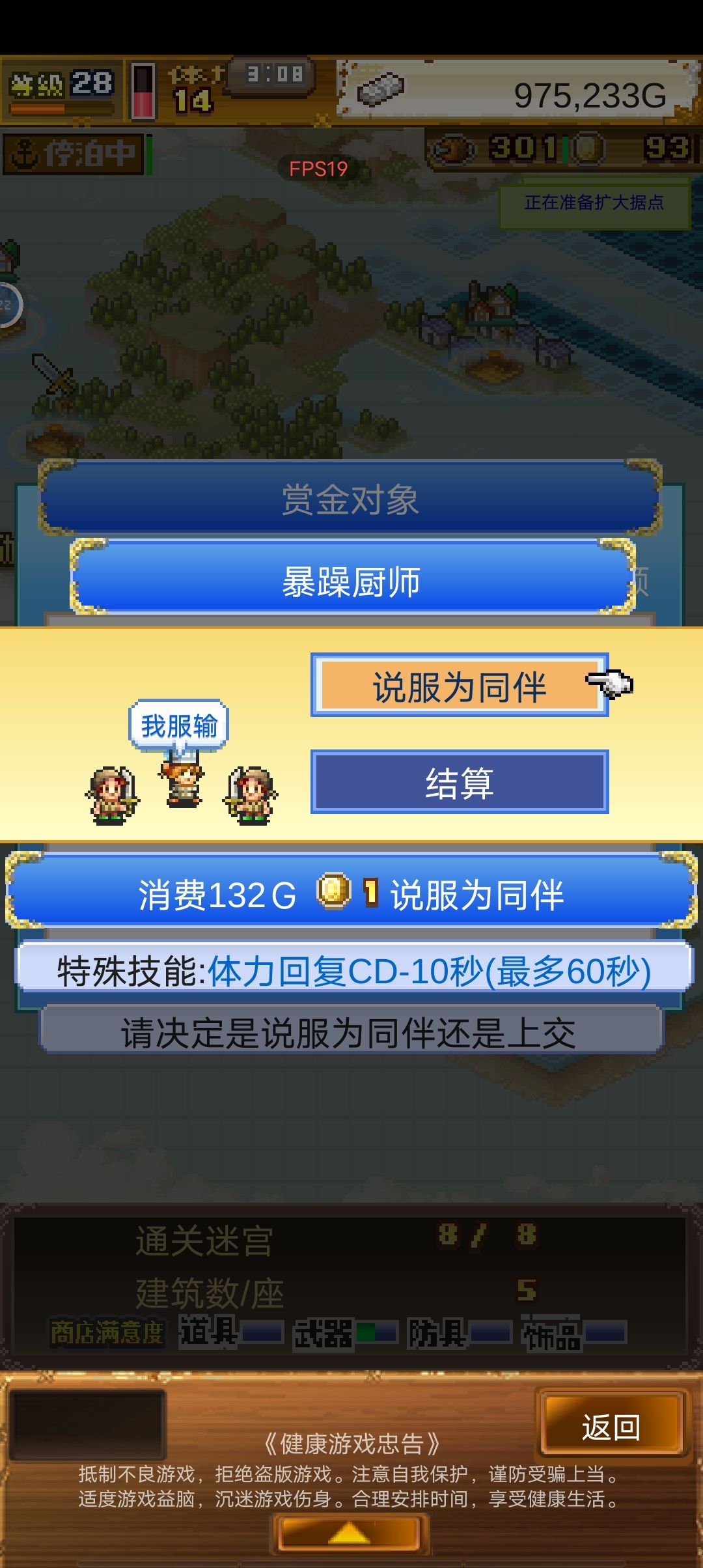困难模式轮回无休15小时赚300奖牌大法 ✘全程满体力打怪,新手玩家和无会员玩家都可以使用。 ✘招募队伍:两冒险家,六厨师,五船夫。 总共带八个宠物,七个打架,还有一个吃多余食物用,不带多,带多了木工不去岛上升建筑。 ✘星期二到星期五的轮回可以招一个1奖牌航海家,可以减少部分休息时间很划得来,队伍有召唤师基本上12岛必掉一个。星期一六七不需要。 ✘转职后队伍: ①两大王一召唤师六木工两航海家一农夫