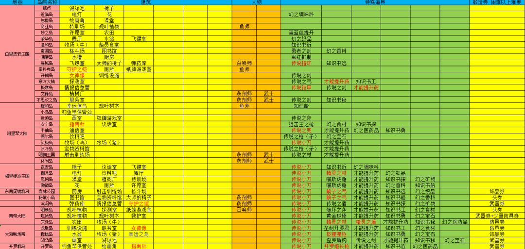 因为预览图看着很糊,我先发3张图,其它的回头发评论区原贴链接方便查看,第一张是解锁条件图,之前找了很久,也不知道哪位大神做的,方便轮回刷金币自己制定路线用。 第二张是挂海刷券指南,不过实际上我之前测过最好困难210刷香料,350刷石头和头防,一般情况下295不作为常刷海域因为一直刷会缺幻之食材。 第三张是到对应岛屿吹笛子刷岛甲板用。主要用来查询活动怪。 奇怪了我原图不糊的为啥预览这么糊 另外如无必