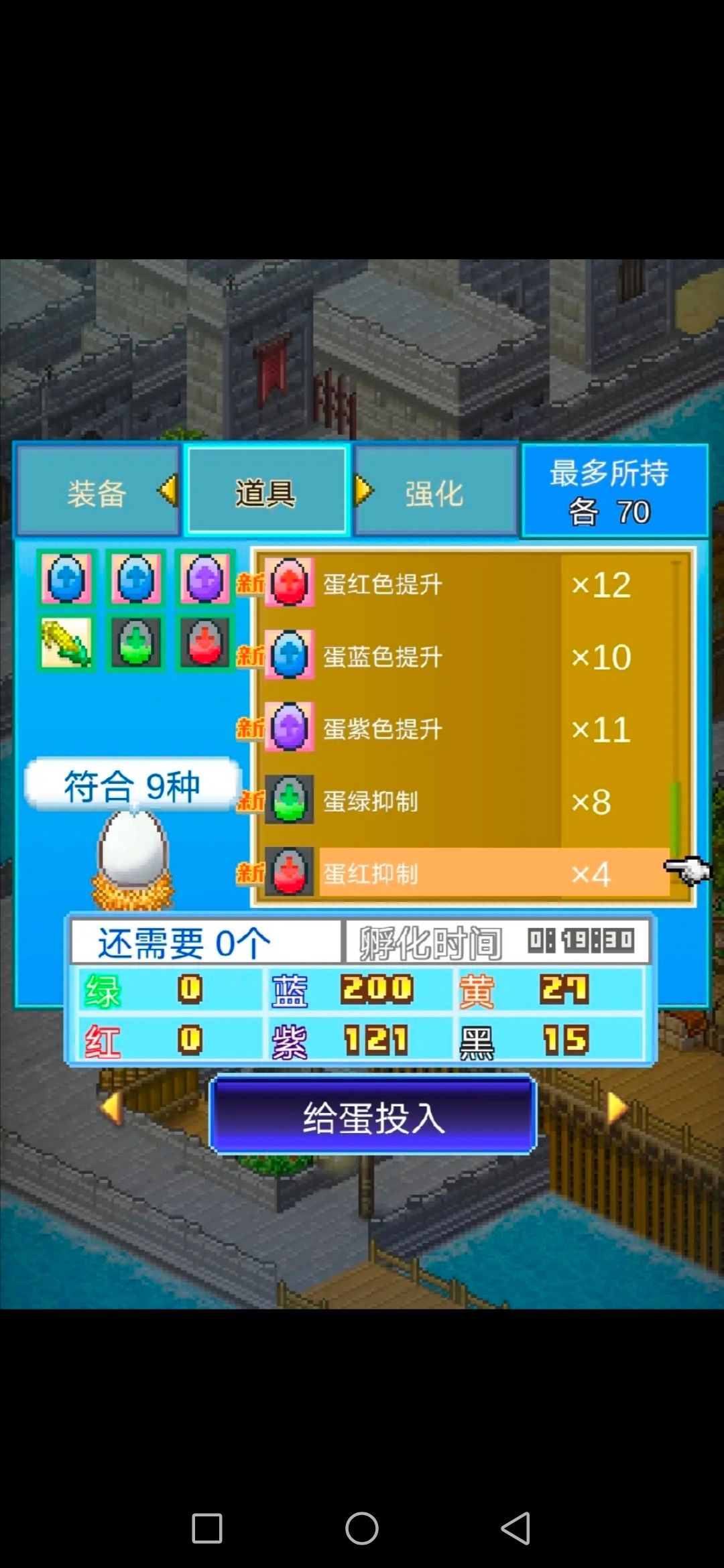 小伙伴们大家好,这边也是实验出歪罗君王改孵化的方法,大大节省了大家的孵化时间,下面给大家分享一下。 首先,我们要清楚歪罗君王改的色素配表:绿色117-490,红色234-490,蓝色390-500,紫色234-490,黄色117-490,黑色81-490。 在色素配表的基础上,我们至少需要四星蛋,三星蛋加才能提升药理论上也可行,但是三星蛋数值比四星蛋低,所以推荐四星蛋,歪罗君王改是大型宠,中后期使